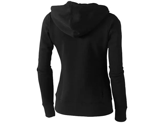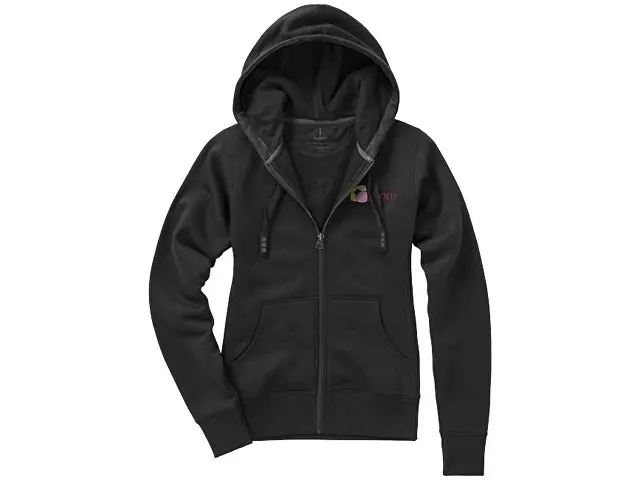 Женский свитер Arora с капюшоном и застежкой-молнией на всю длину. Стандартный покрой. Резинка 2х2 на боковых вставках, поясе и манжетах. Карман кенгуру. Мужская и женская модели с завязками на капюшоне. Подкладка внутри капюшона. Атласная лента внутри горловины. Принт лого сзади в тон изделия. Серебристые люверсы с лого. Ворсистый внутри для мягкости, тепла и комфорта. Трикотаж: 80% хлопок и 20% полиэстер, чесаная внутренняя сторона. 300 г/м².