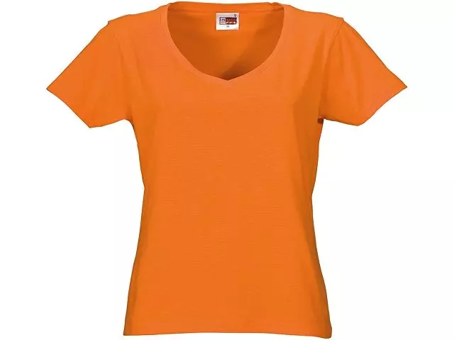Женская футболка из натурального хлопка с элегантным V-образным вырезом. Материал отлично подходит для нанесения рекламной информации. Натуральная ткань не вызывает раздражения кожи.