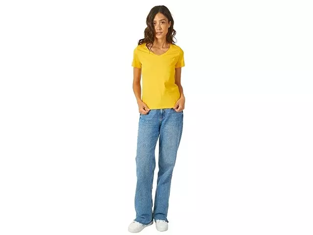 Женская футболка из натурального хлопка с элегантным V-образным вырезом. Материал отлично подходит для нанесения рекламной информации. Натуральная ткань не вызывает раздражения кожи.