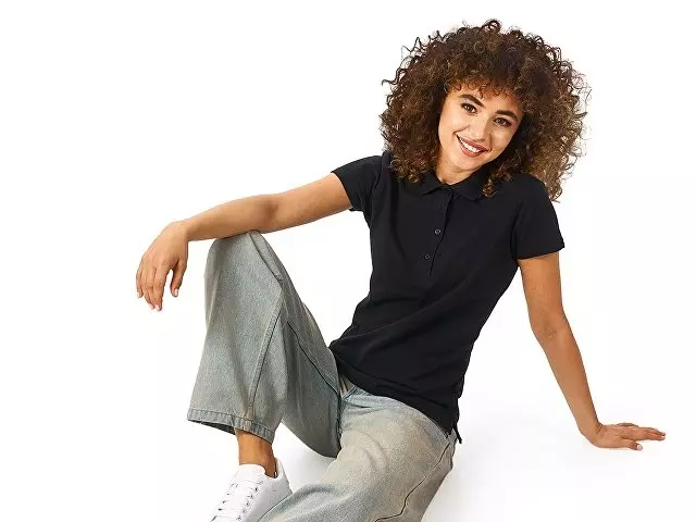 Женская рубашка-поло First. Воротник 1х1. Обшивка внутри воротника. Мужская и детская модели с 2 пуговицами, женская - с 4 пуговицами. Пуговицы с гравировкой в тон. Пике, 100% хлопок. 160 г/м2. Данная модель на 1 размер больше модели женского поло First.