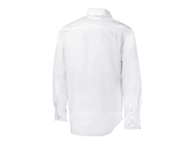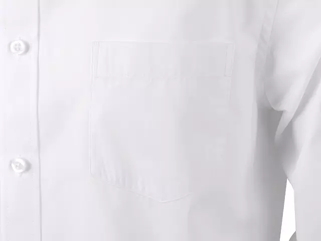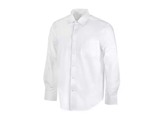 Рубашка мужская с длинным рукавом на семи пуговицах. Накладной карман на груди слева, на спинке складки из-под кокетки, манжеты с двумя пуговицами и пуговица по планке рукава.