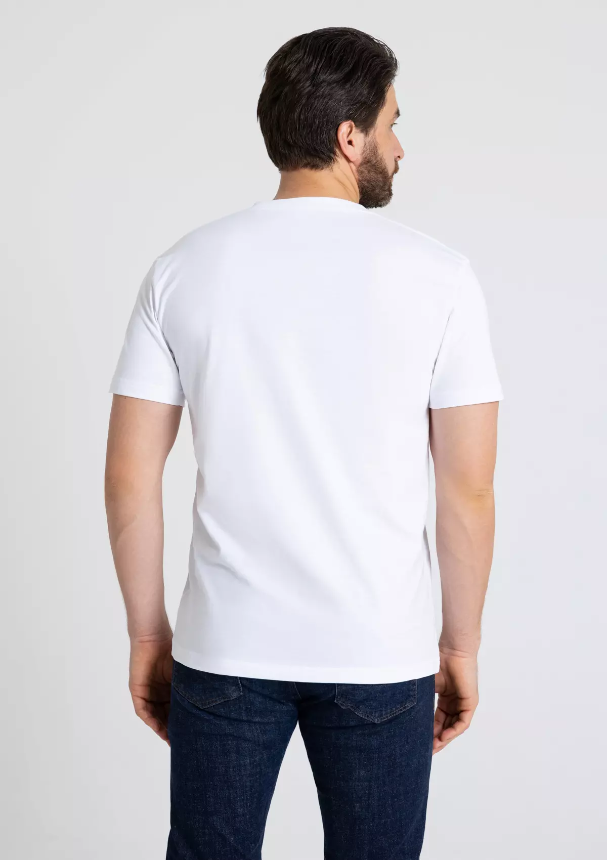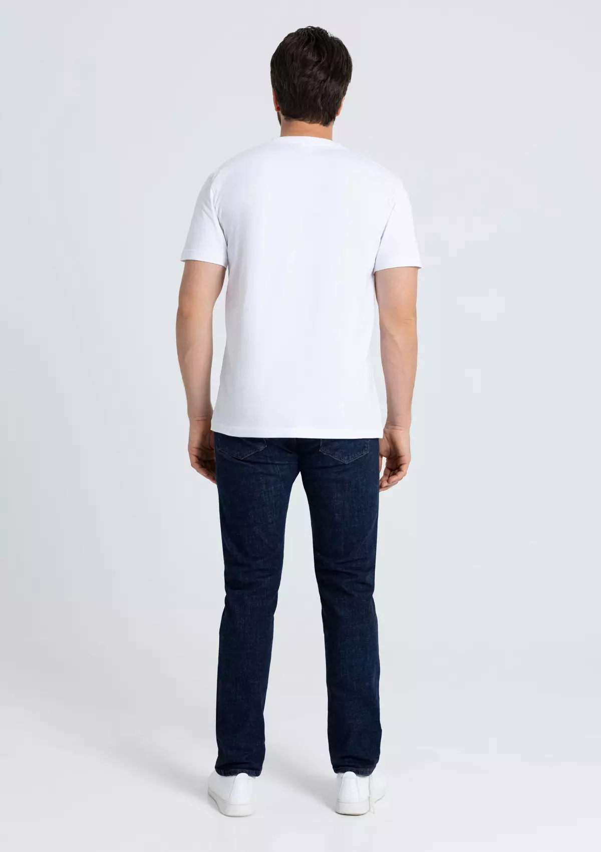 Мужская футболка прямого силуэта с округлым воротом и втачным рукавом.
