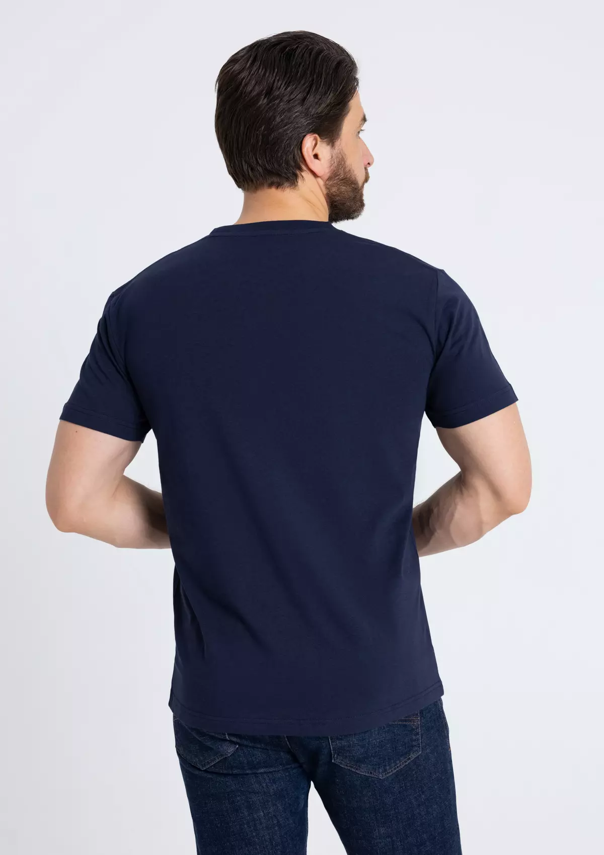 Мужская футболка прямого силуэта с округлым воротом и втачным рукавом.