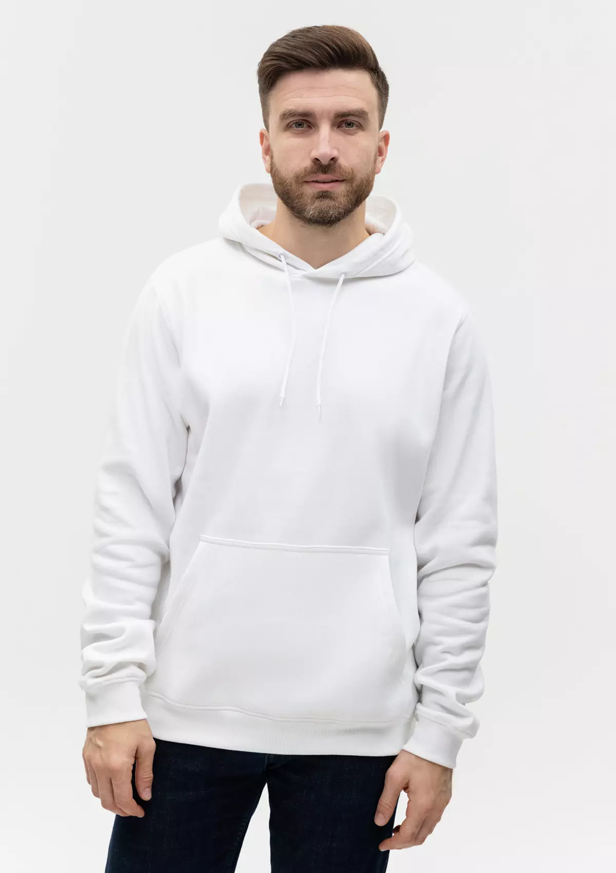 Размер мужского худи: XXL/54. Параметры модели: рост 190 см.; обхват груди 108 см.; обхват талии 87 см.; обхват бедер 104 см.