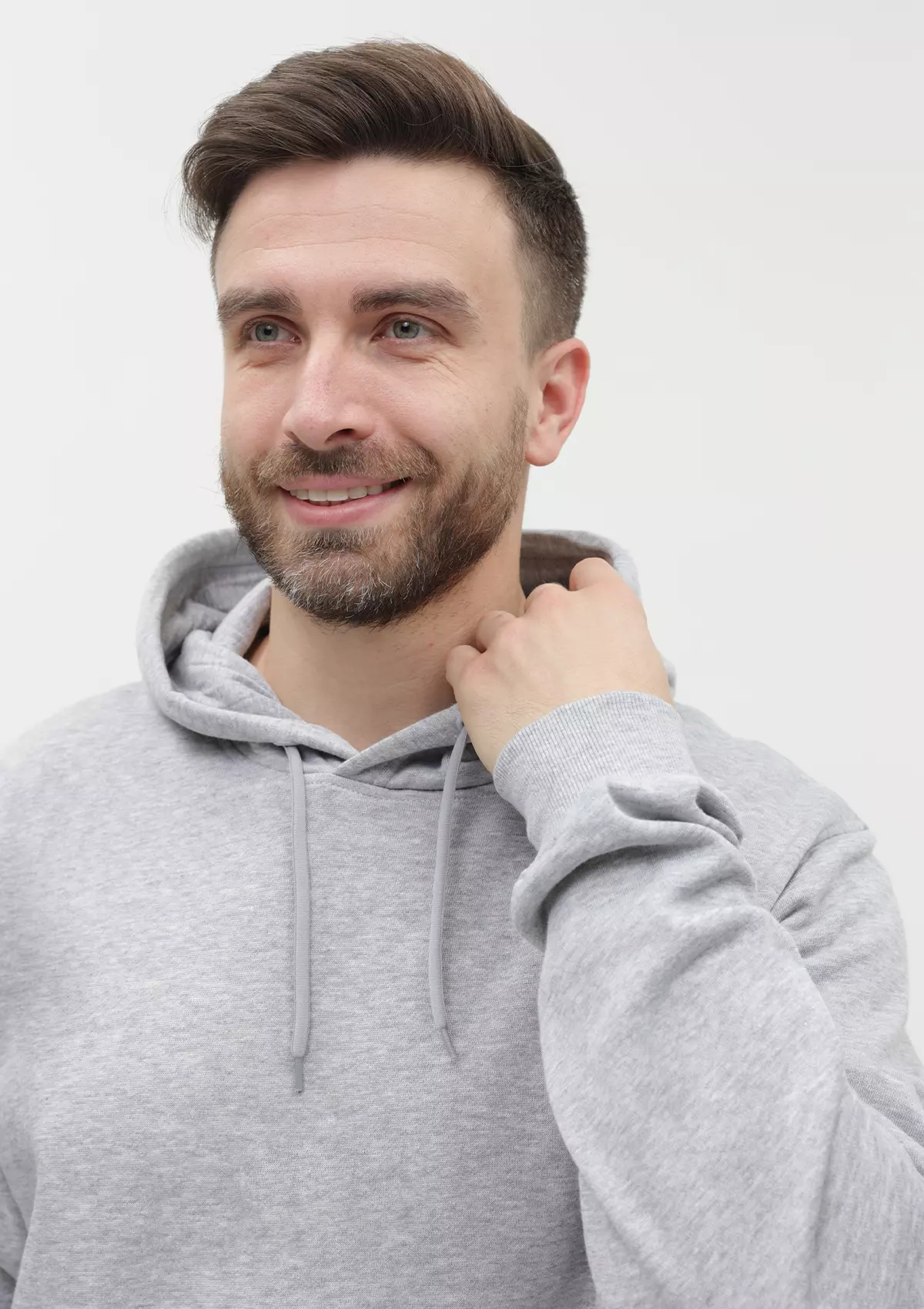 Толстовка унисекс прямого силуэта с капюшоном, втачным рукавом и карманом-кенгуру. Капюшон дополнен шнурком для регулирования прилегания, манжет и низ изделия оформлены широкой эластичной резинкой. Возможно несколько вариантов исполнения толстовки.