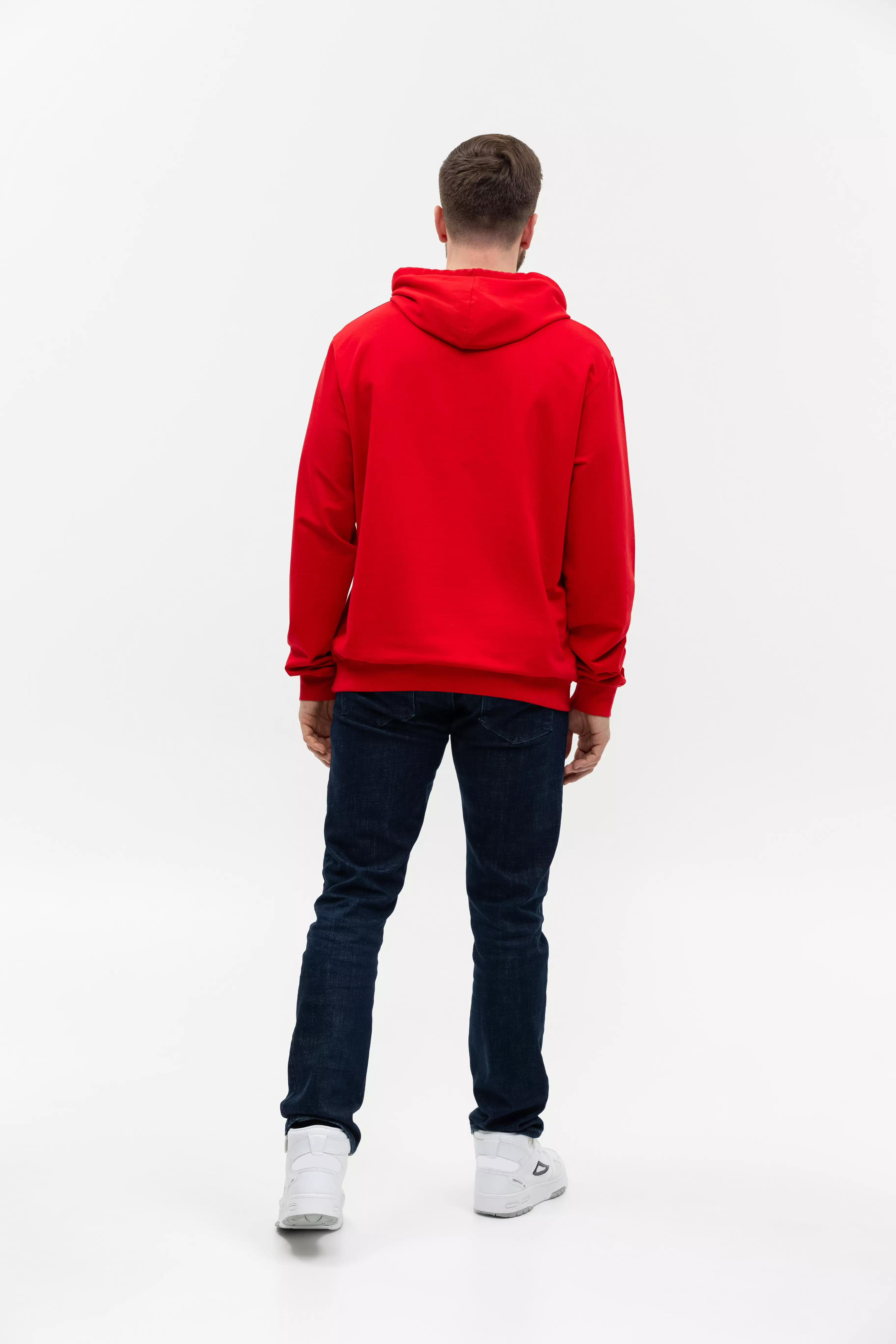 Размер мужского худи: XL/52. Параметры модели: рост 190 см.; обхват груди 108 см.; обхват талии 87 см.; обхват бедер 104 см.