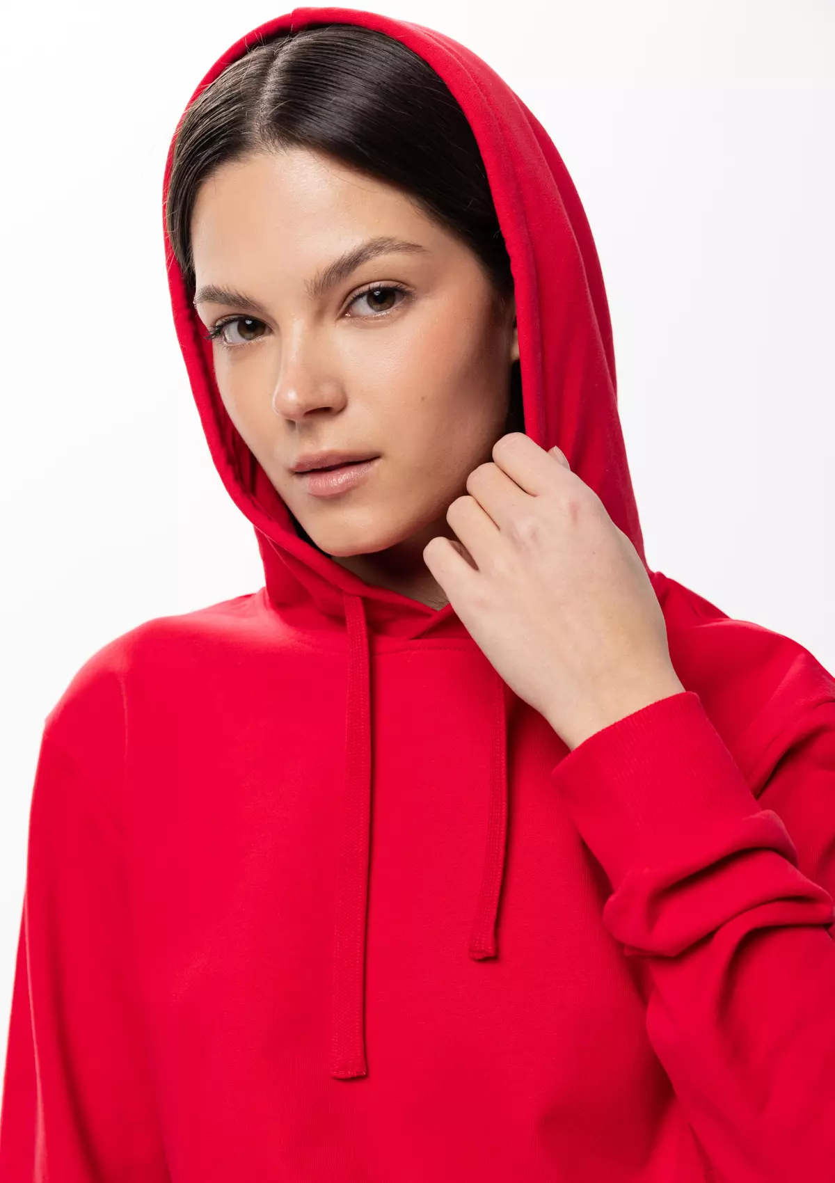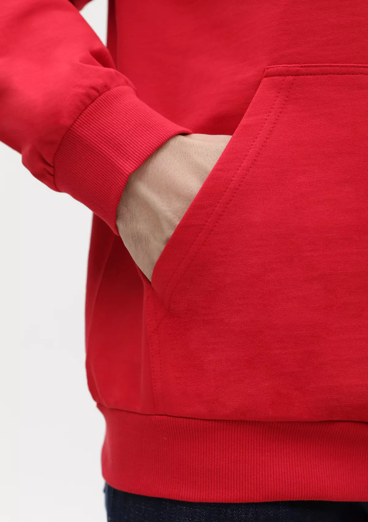 Толстовка прямого силуэта с капюшоном, втачным рукавом и карманом-кенгуру. Капюшон дополнен шнурком для регулирования прилегания, манжет и низ изделия оформлены широкой эластичной резинкой. Возможно два варианта исполнения: контрастные шнурок и бейка/шнурок и бейка в цвет толстовки.