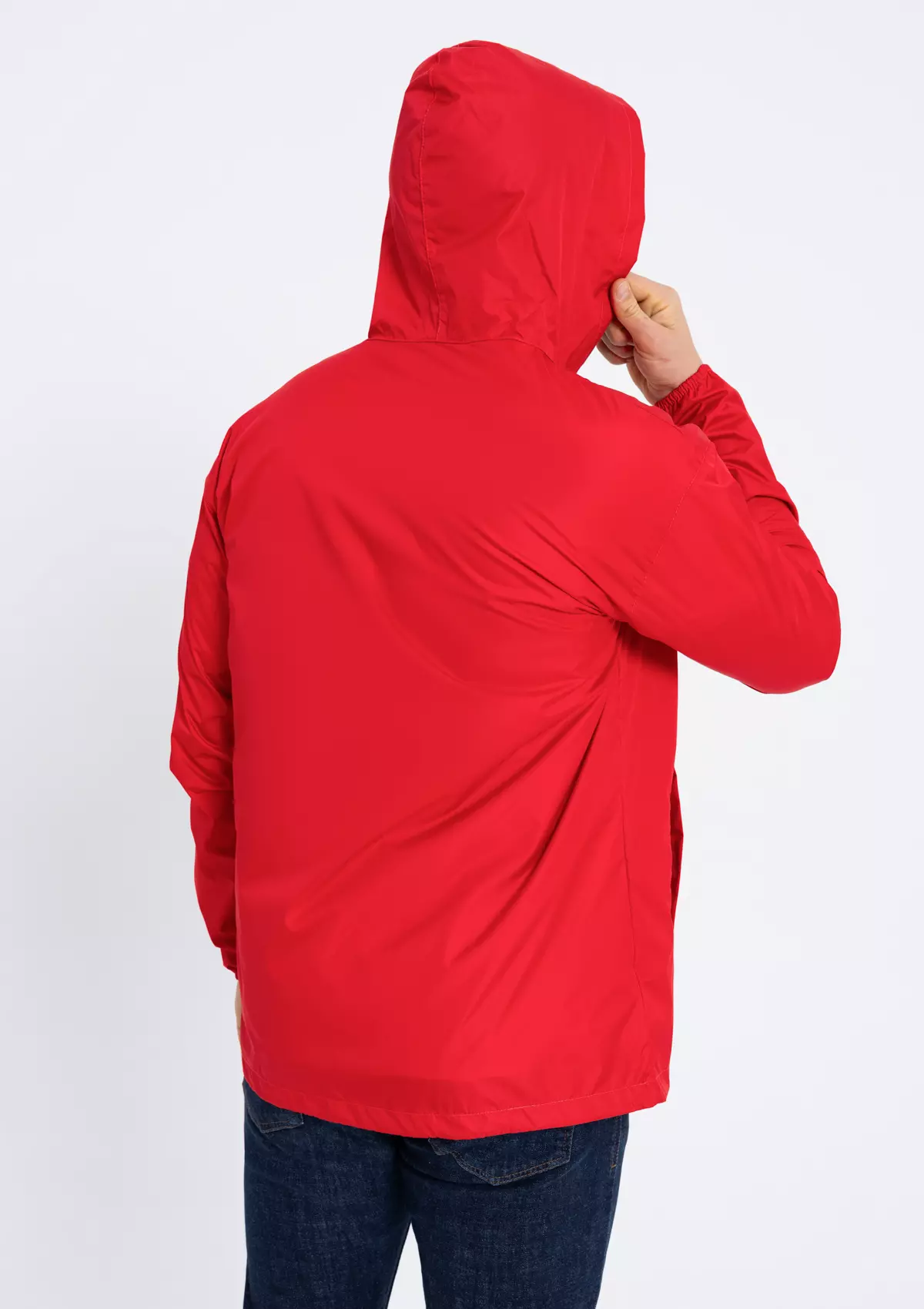 Ветровка прямого силуэта с глубоким капюшоном, спущенной линией плеча, прорезным карманом и застежкой на молнию. Для дополнительной защиты от ветра изделие дополнено эластичной резинкой на рукаве и кулисой по линии низа.
