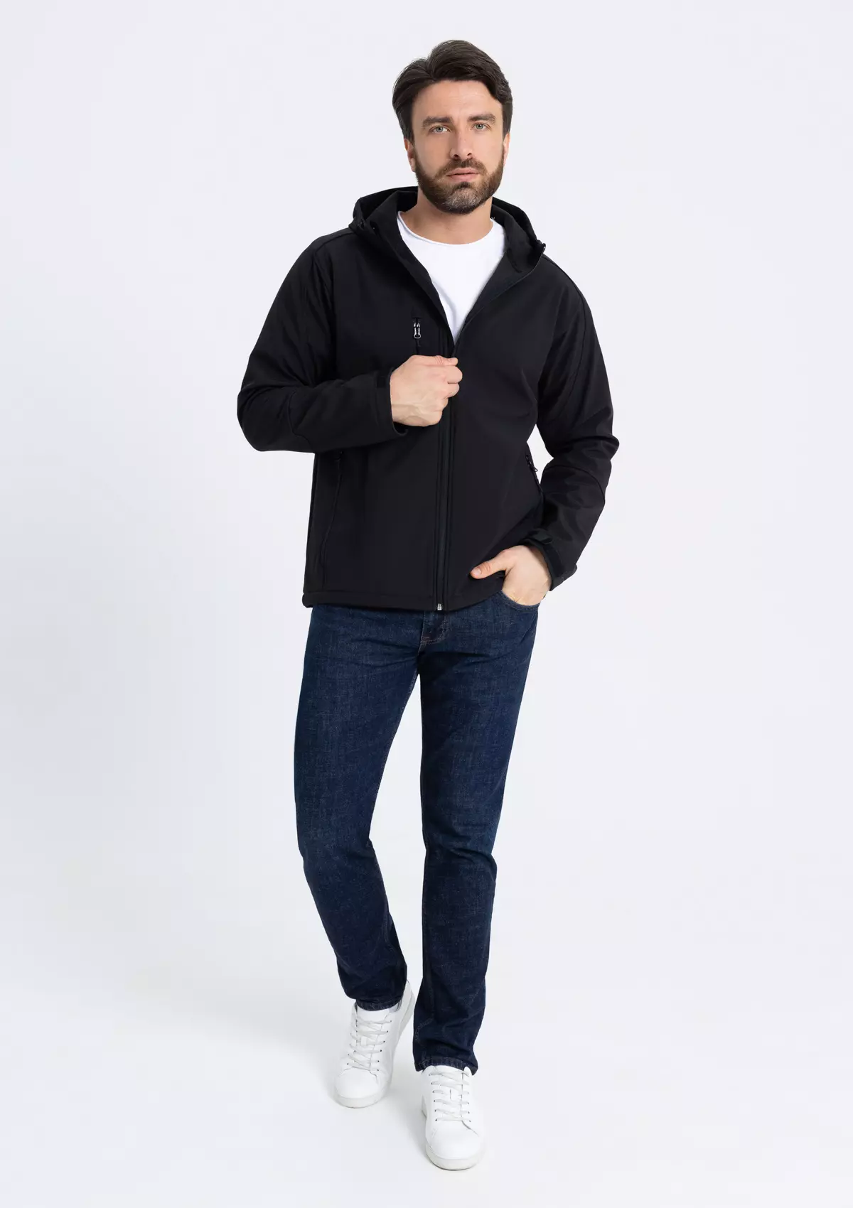 Универсальная куртка прямого силуэта с воротником-стойкой, переходящим в капюшон с регулируемым прилеганием. Рукав-реглан, прорезной карман и застежка на молнию с внутренней ветрозащитной планкой. Крой дополнен функциональными элементами: внешний и внутренний прорезной карман, лента «велкро» на манжете, кулиса на капюшоне и пол линии низа изделия.