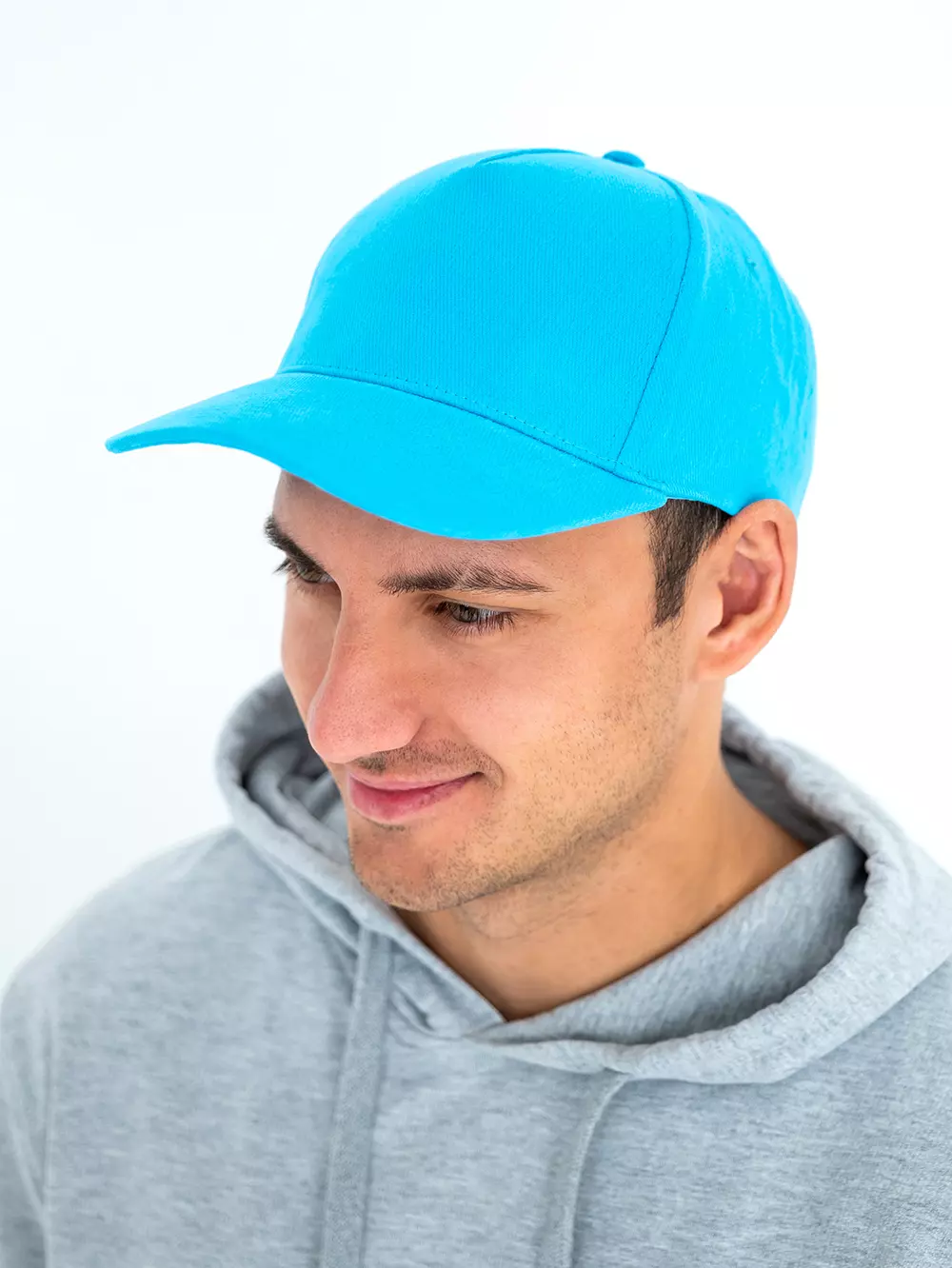 Бейсболка-пятиклинка с классическим изогнутым козырьком и прочной застежкой на металлический замок.