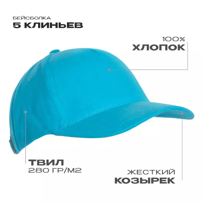 Бейсболка-пятиклинка с классическим изогнутым козырьком и прочной застежкой на металлический замок.