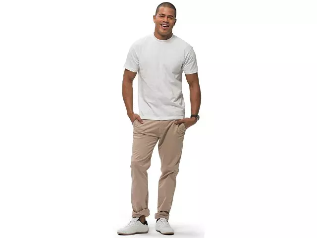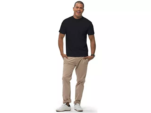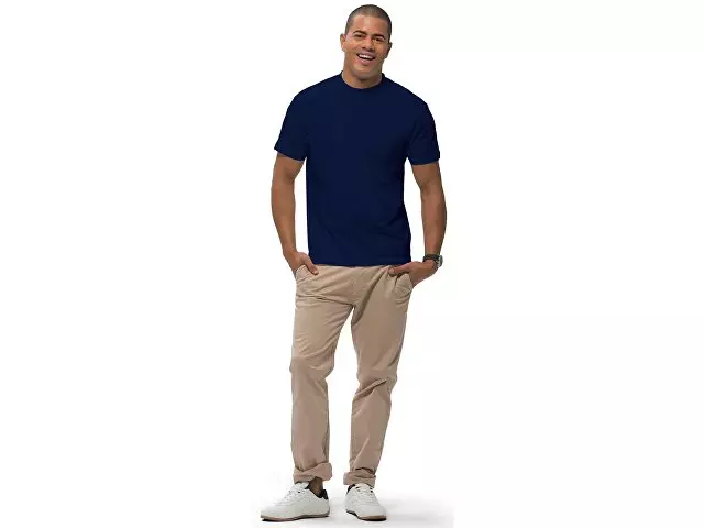 Футболка с короткими рукавами Ace. Мужская модель свободной посадки. Без боковых швов. Резинка с эластаном и двойной строчкой на воротнике. Лента от плеча к плечу. Однослойная джерси, 100% хлопок. 150 г/м².