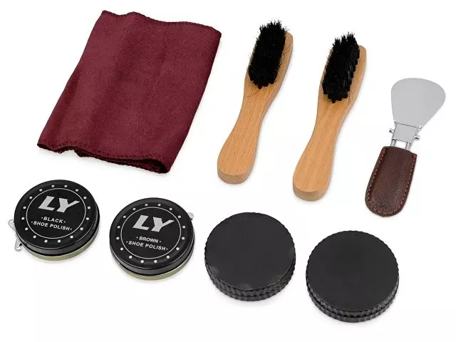 Подарочный набор для чистки обуви включает в себя 8 предметов, которые предназначены для поддержания чистоты вашей обуви. В комплект входят чистящие средства, так что не придется покупать их отдельно. Набор упакован в солидный футляр "под кожу", который удобно брать в дорогу, в командировку. Набор представлен также и в других цветах.