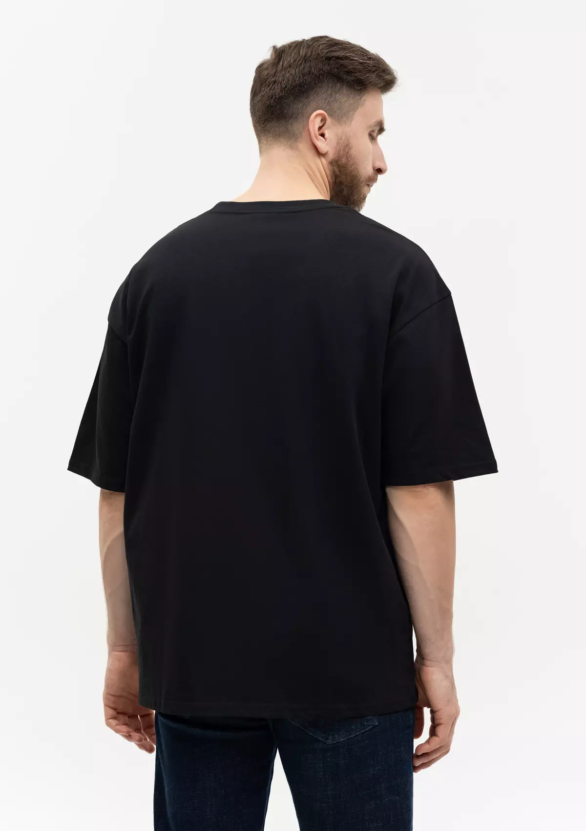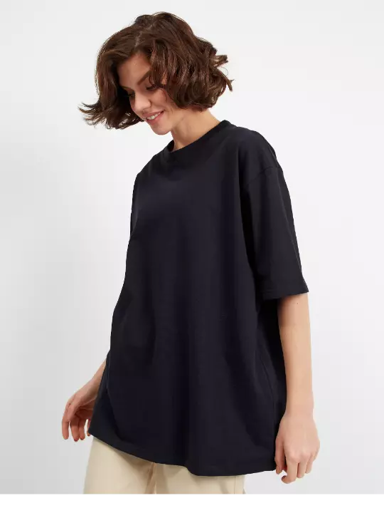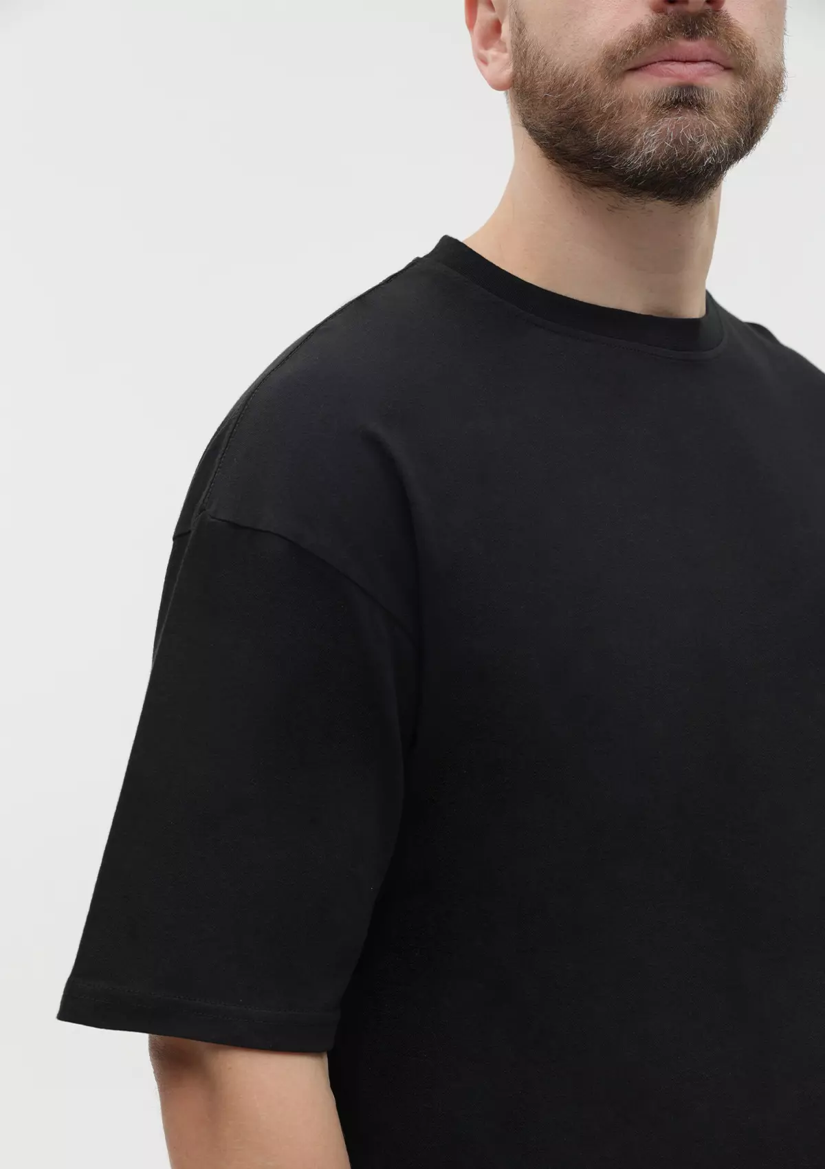 Универсальная футболка силуэта-oversize с округлым воротом и спущенной линией плеча.
