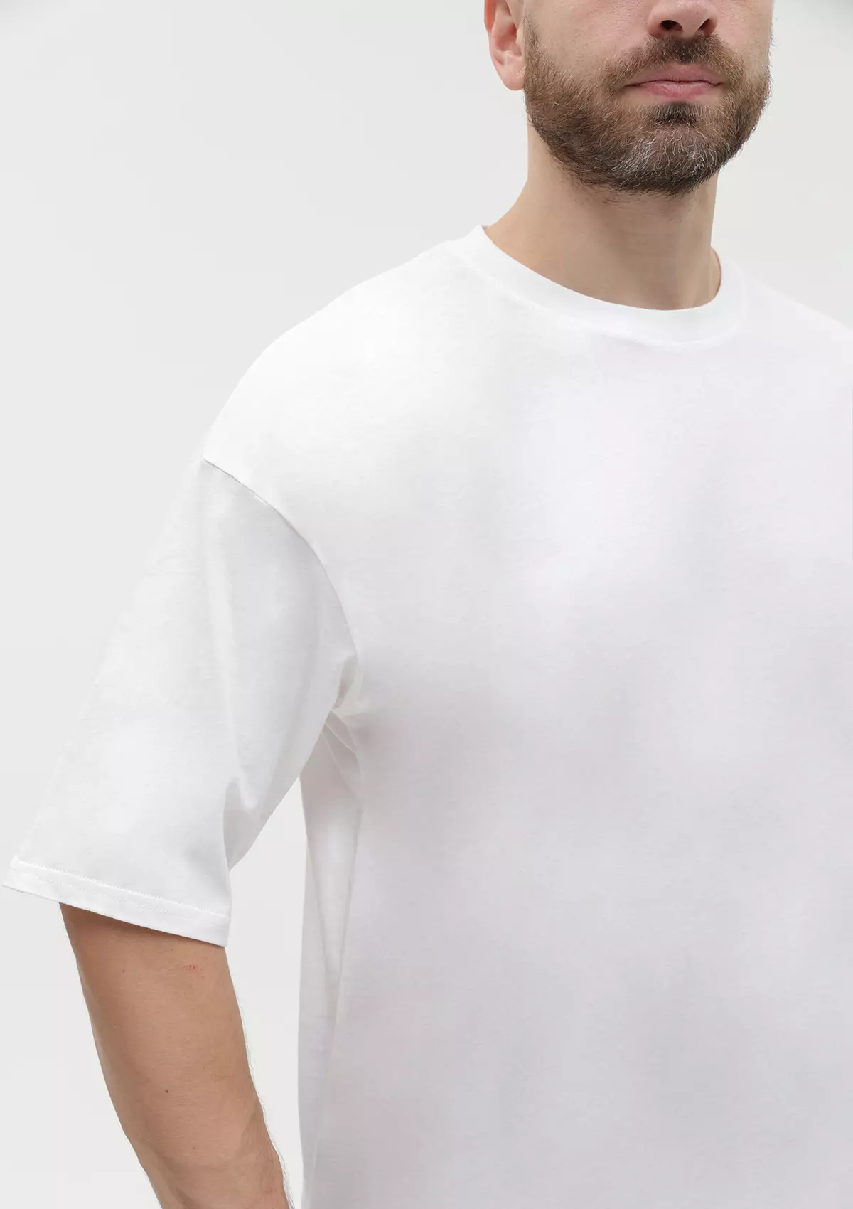 Универсальная футболка силуэта-oversize с округлым воротом и спущенной линией плеча.
