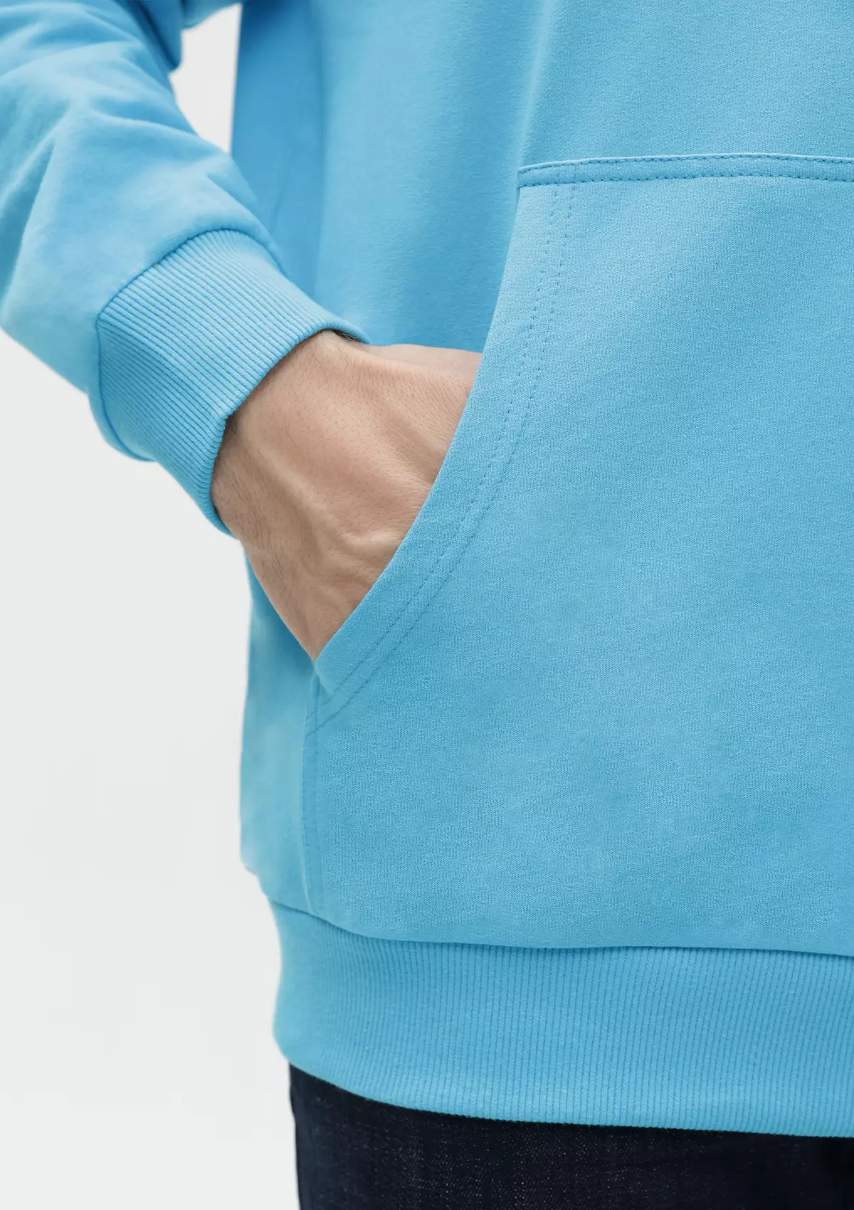Толстовка прямого силуэта с капюшоном, втачным рукавом и карманом-кенгуру. Капюшон дополнен шнурком для регулирования прилегания, манжет и низ изделия оформлены широкой эластичной резинкой. Возможно два варианта исполнения: контрастные шнурок и бейка/шнурок и бейка в цвет толстовки.