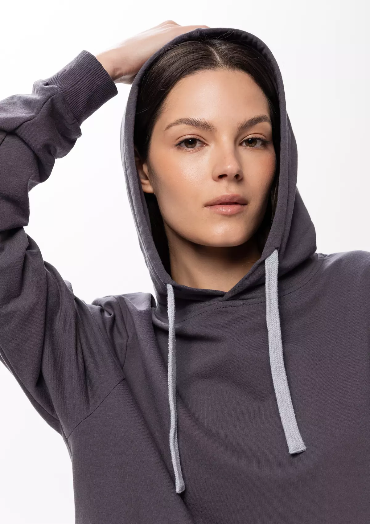 Размер женского худи: XXS/42. Параметры модели: рост 173 см.; обхват груди 80 см.; обхват талии 58 см.; обхват бедер 89 см.