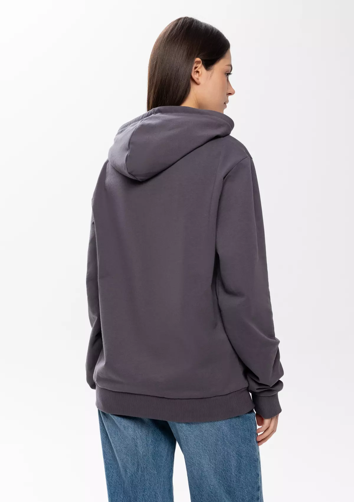 Толстовка прямого силуэта с капюшоном, втачным рукавом и карманом-кенгуру. Капюшон дополнен шнурком для регулирования прилегания, манжет и низ изделия оформлены широкой эластичной резинкой. Возможно два варианта исполнения: контрастные шнурок и бейка/шнурок и бейка в цвет толстовки.