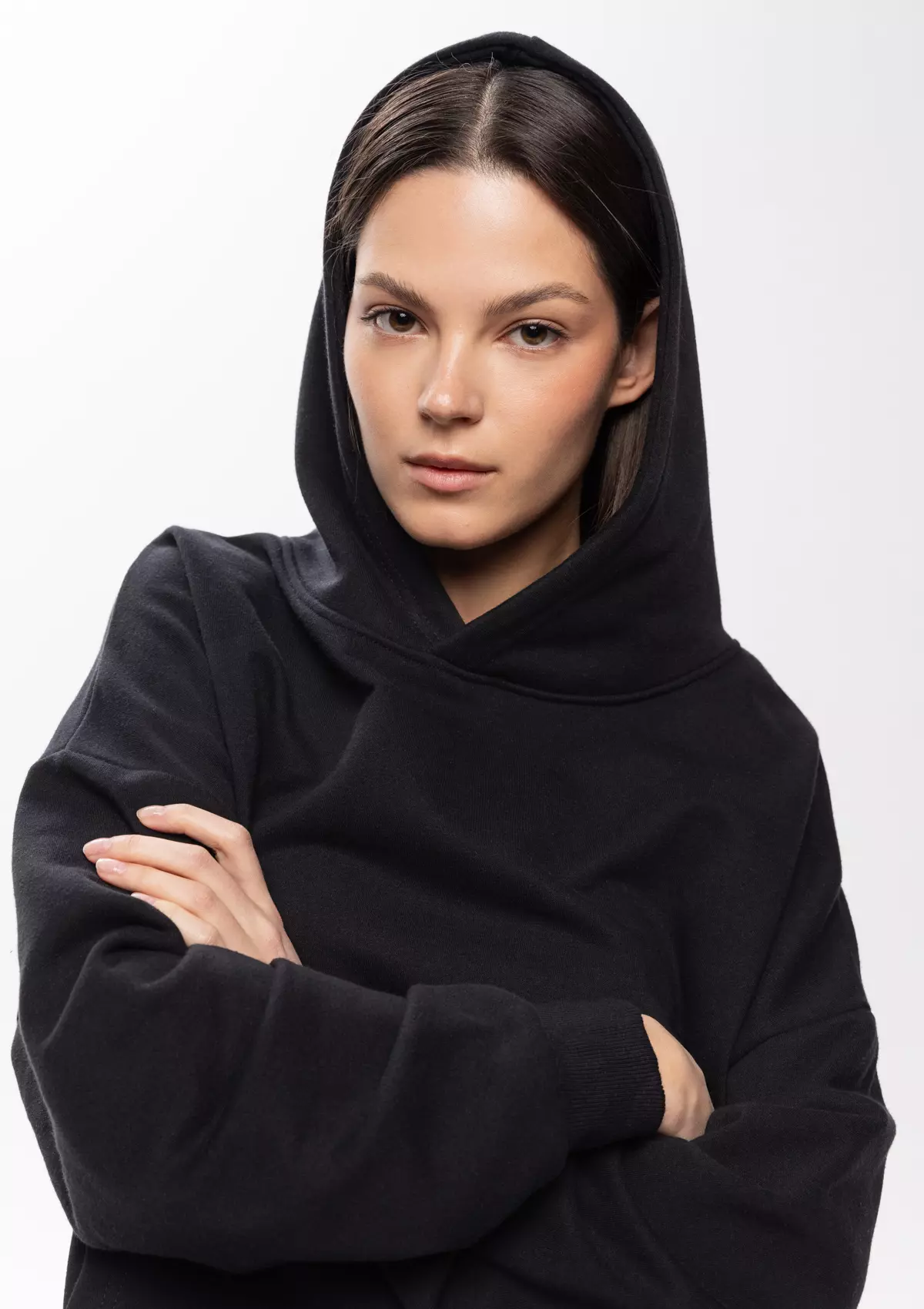 Размер женского худи: XS/44. Параметры модели: рост 173 см.; обхват груди 80 см.; обхват талии 58 см.; обхват бедер 89 см.