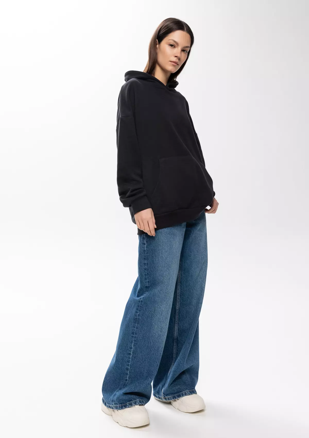Универсальная толстовка свободного силуэта с капюшоном комфортной глубины, спущенной линией плеча и глубоким карманом-кенгуру. Манжет и низ изделия оформлены широкой эластичной резинкой.