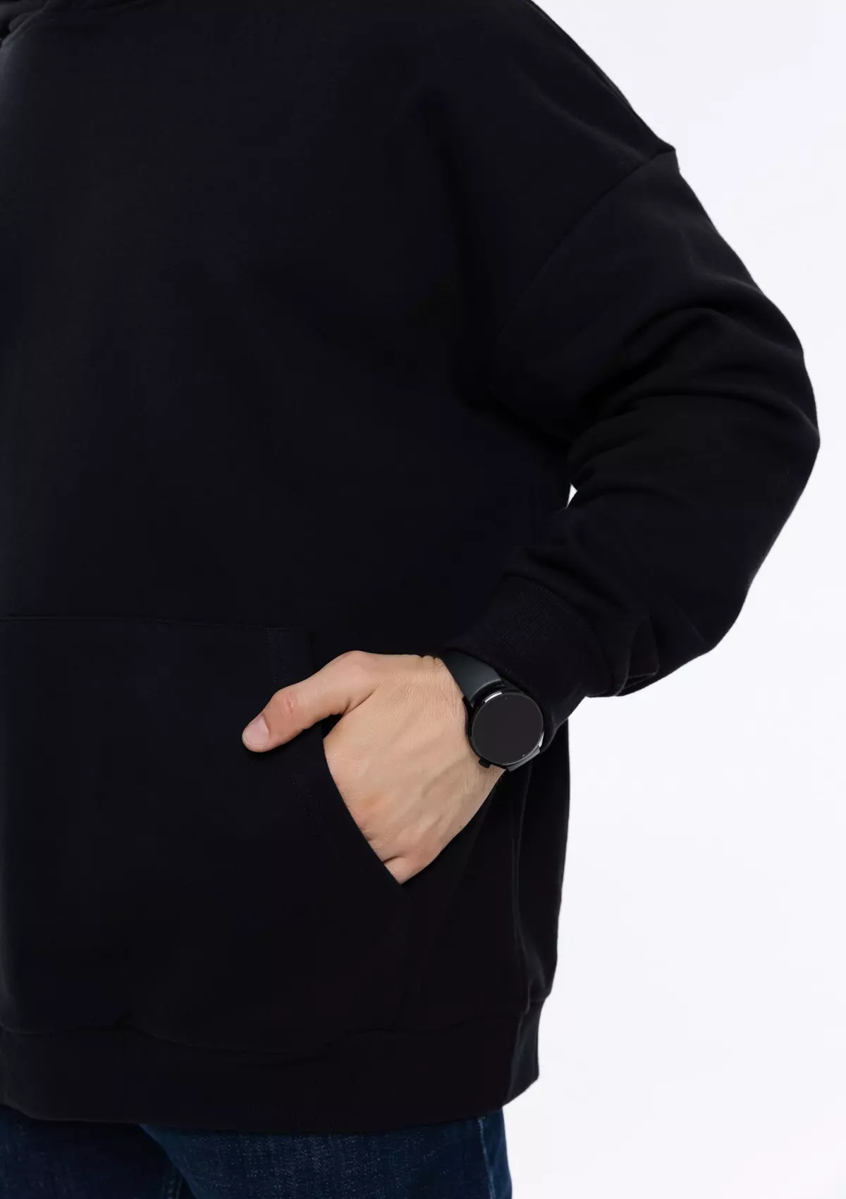 Размер мужского худи: XL/52. Параметры модели: рост 190 см.; обхват груди 108 см.; обхват талии 87 см.; обхват бедер 104 см.