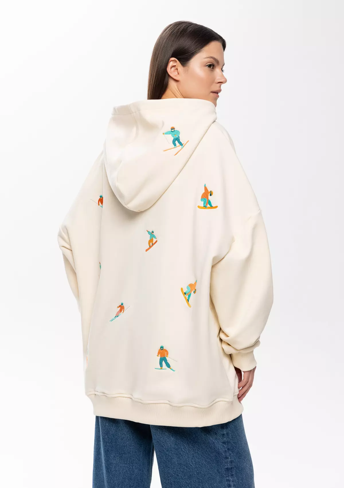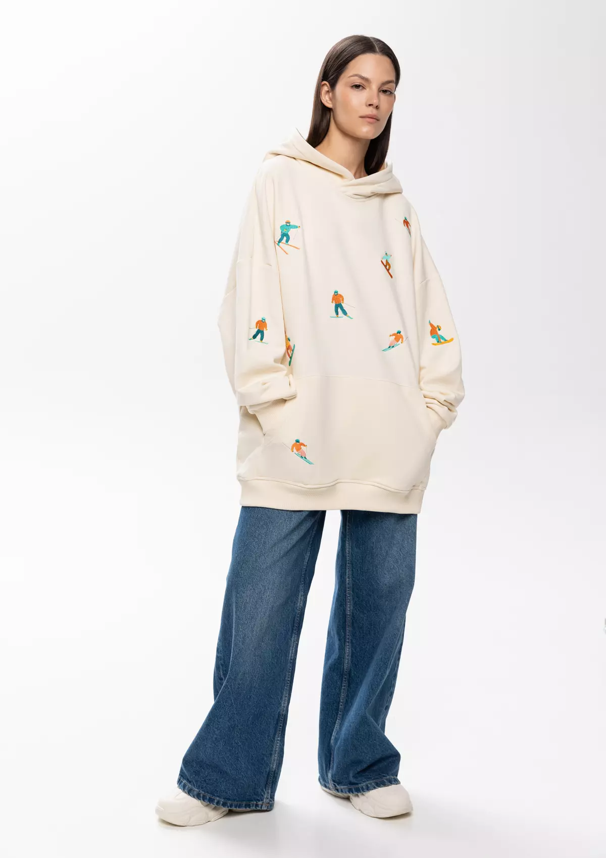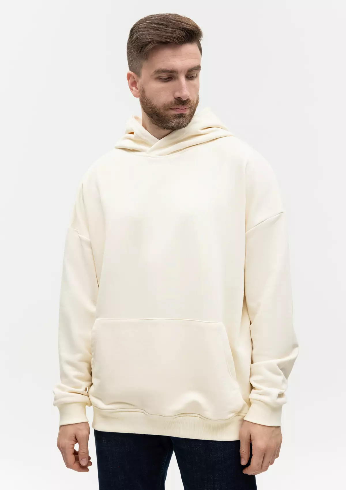 Универсальная толстовка свободного силуэта с капюшоном комфортной глубины, спущенной линией плеча и глубоким карманом-кенгуру. Манжет и низ изделия оформлены широкой эластичной резинкой.