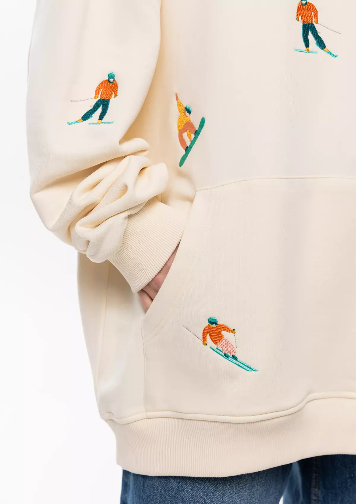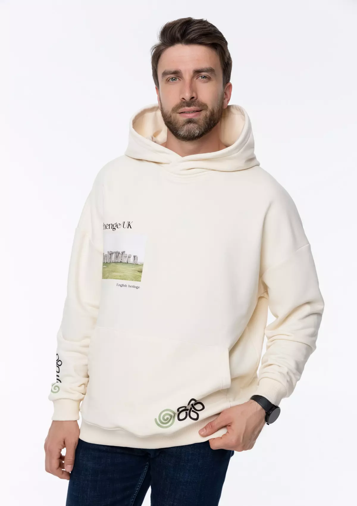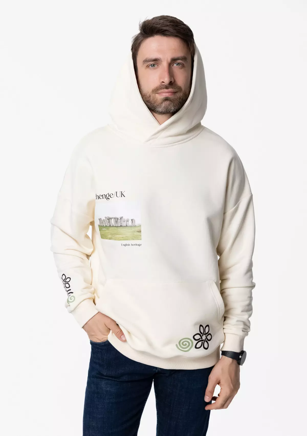 Универсальная толстовка свободного силуэта с капюшоном комфортной глубины, спущенной линией плеча и глубоким карманом-кенгуру. Манжет и низ изделия оформлены широкой эластичной резинкой.