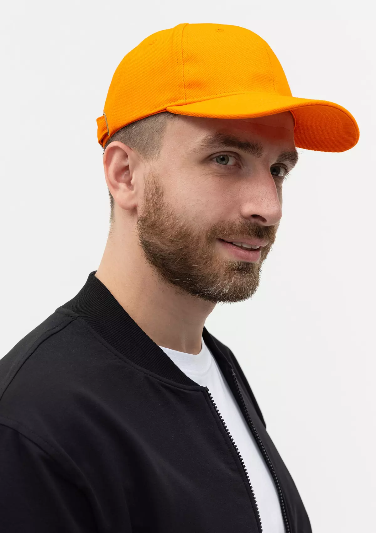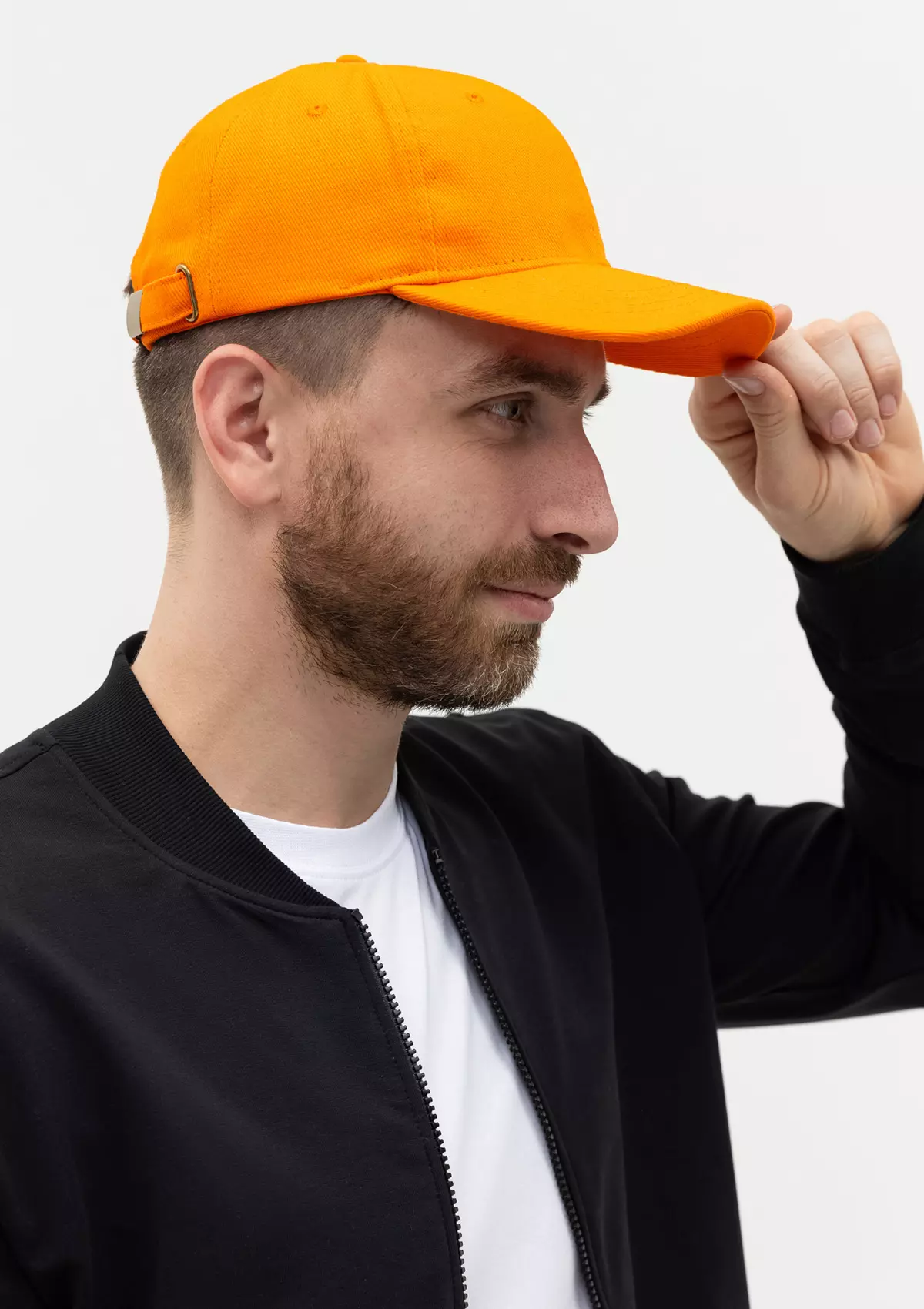 Бейсболка-шестиклинка с изогнутым жестким козырьком, прилегание регулируется ремешком с металлической застежкой.