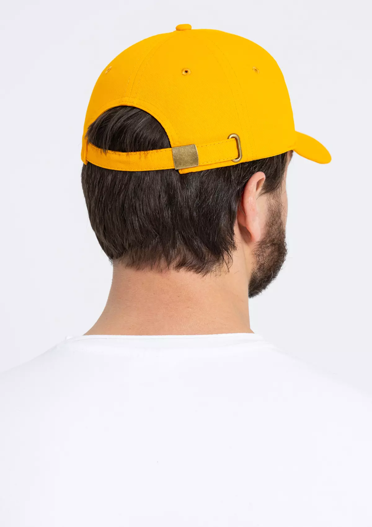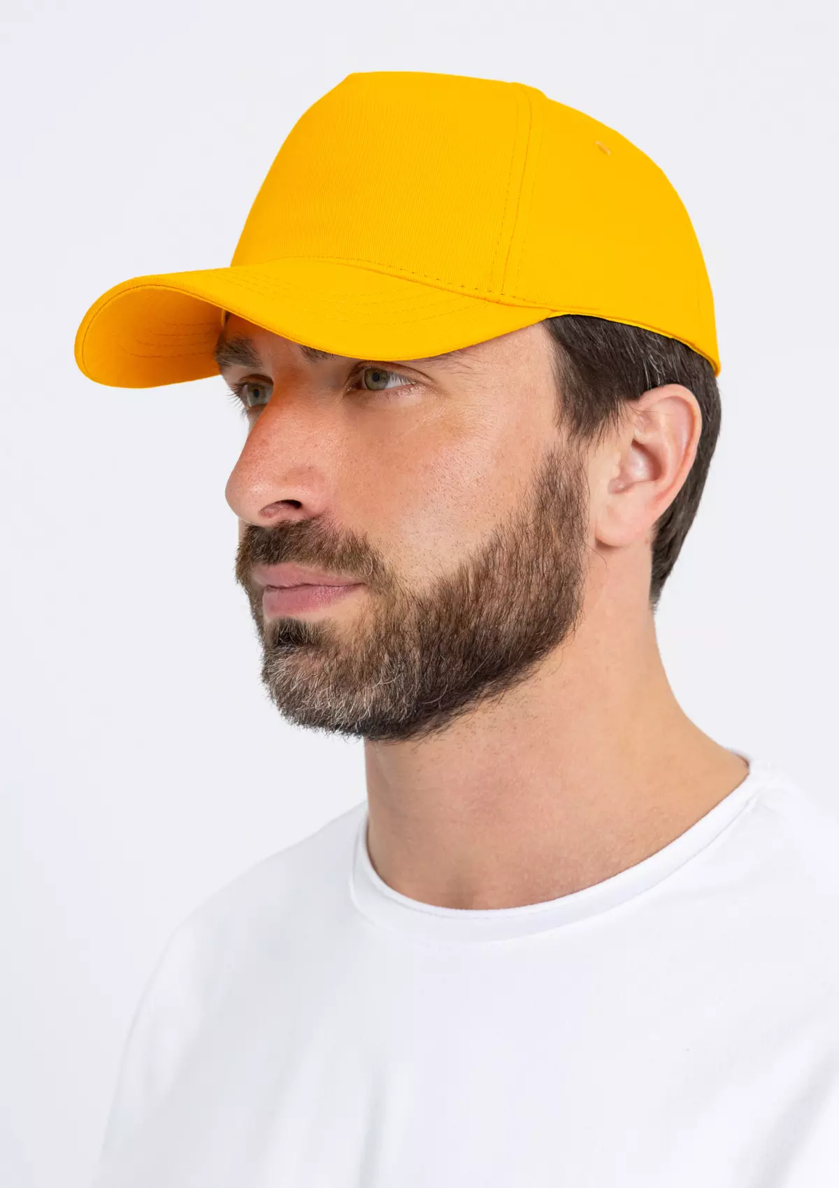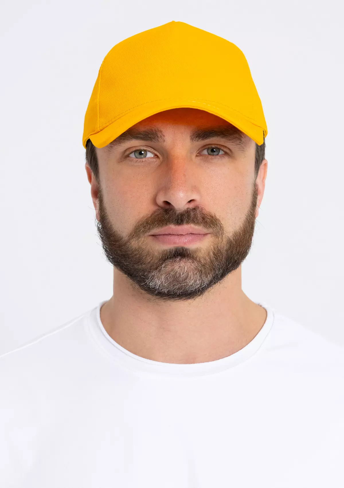 Бейсболка-пятиклинка без лобового шва с изогнутым жестким козырьком. Посадка регулируется ремешком на металлической застежке.