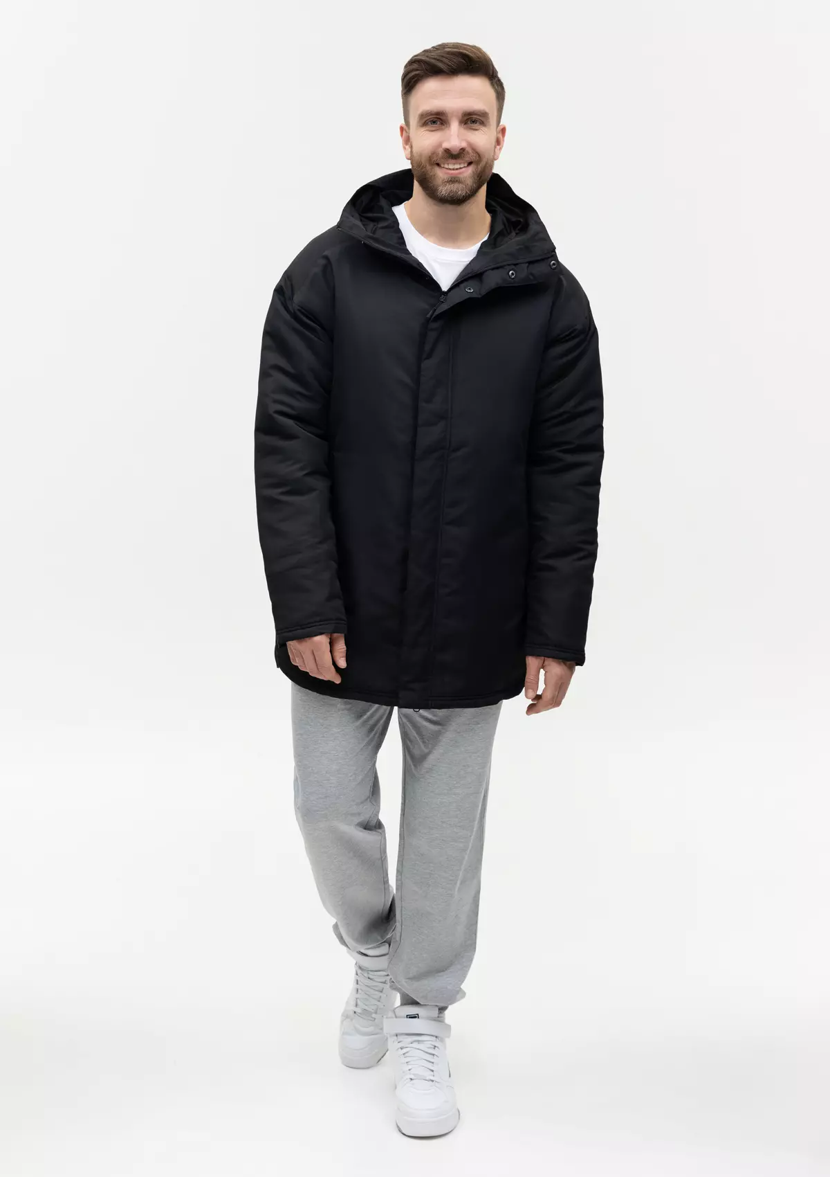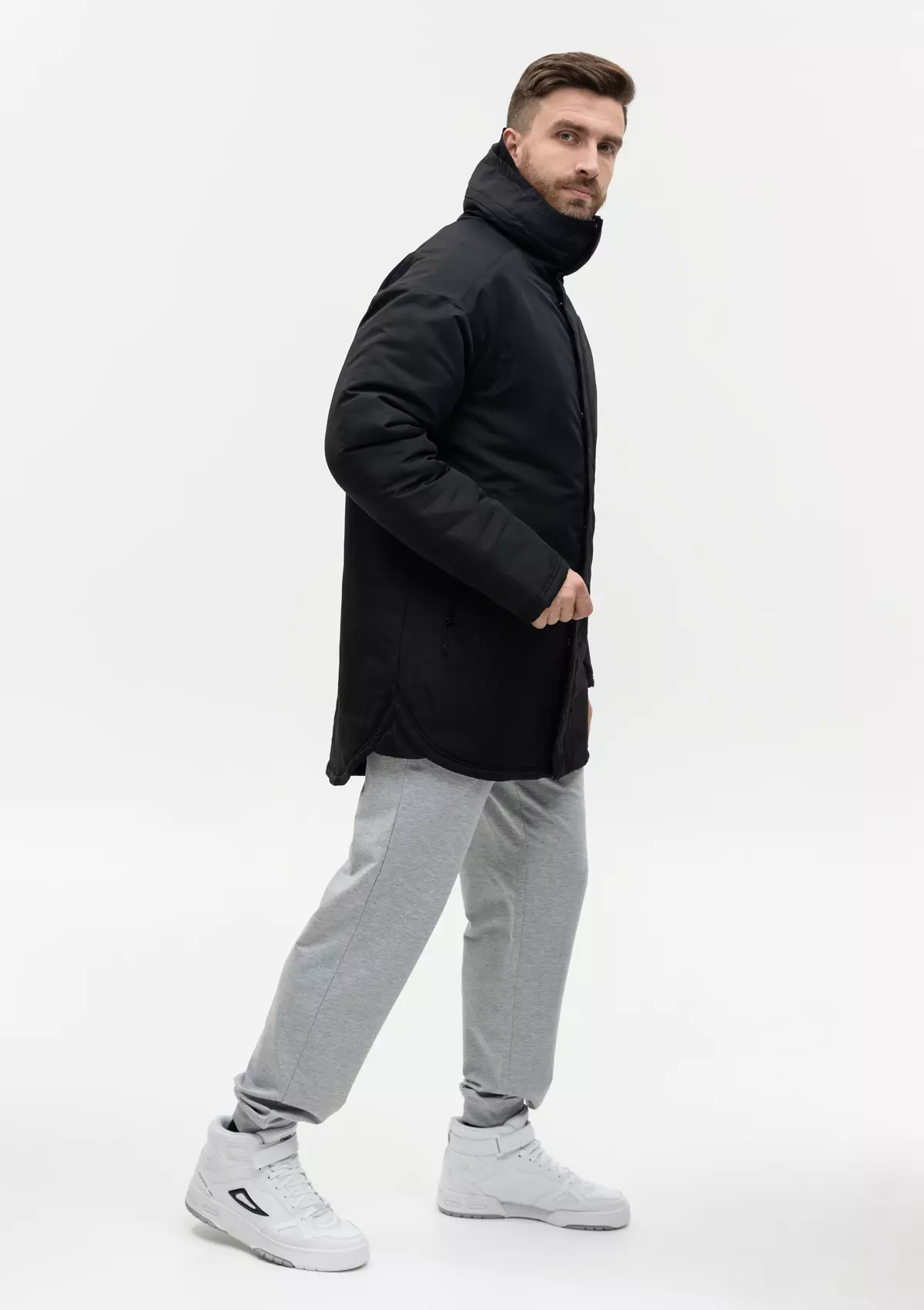 Размер на модели: XL/52. Параметры модели: рост 190 см.; обхват груди 108 см.; обхват талии 87 см.; обхват бедер 104 см.