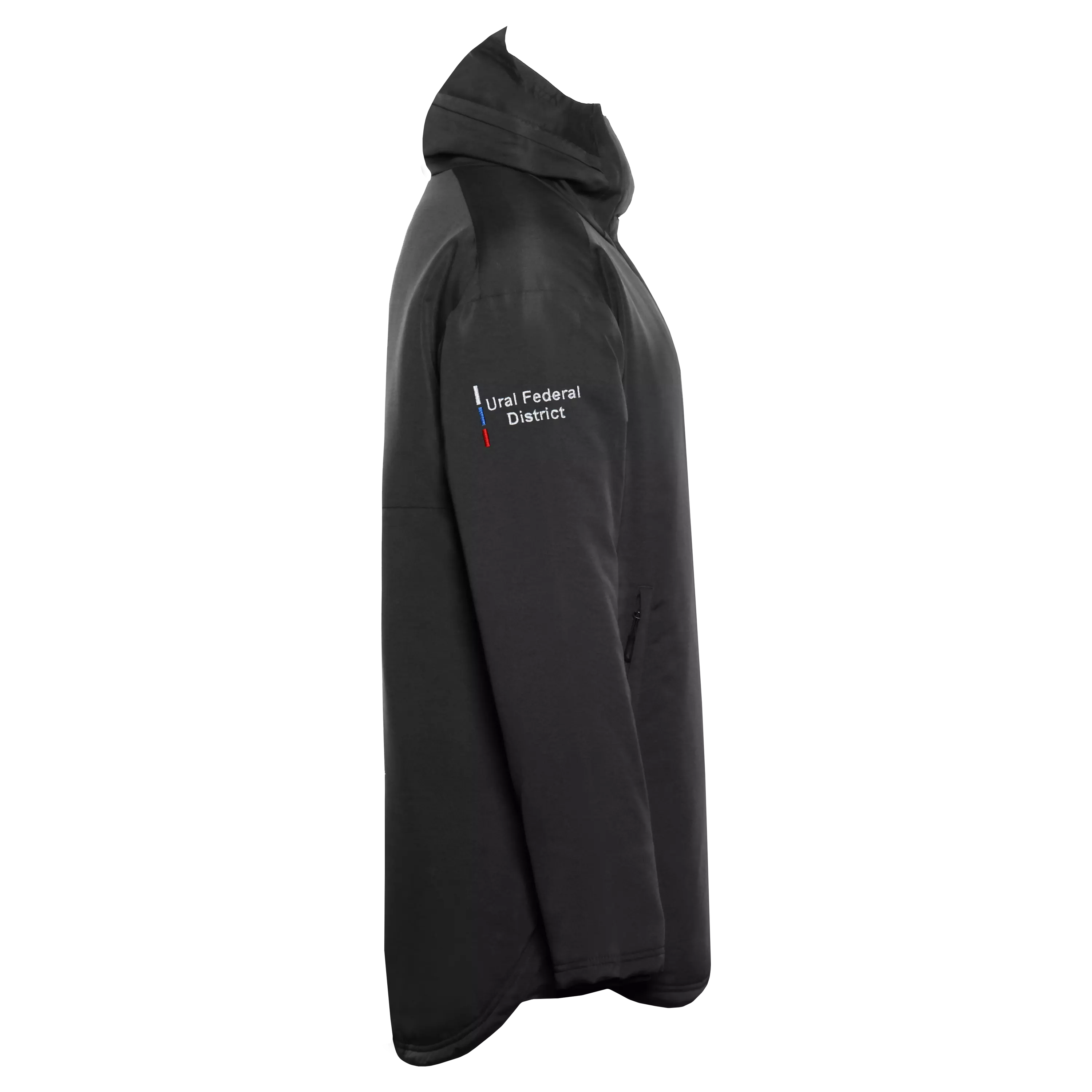 Куртка идеально подходит для спортивных команд; униформы сотрудников для работ на улице, в промышленных зонах и складских помещениях; для повседневной носки. Модель прямого силуэта с воротником стойкой, которая трансформируется в капюшон с флисом внутри и мягкой тканью снаружи. Куртка с втачным рукавом, трикотажным манжетом, застежкой на молнию с ветрозащитной планкой. Два вместительных прорезных кармана с листочками на замке-молнии.
