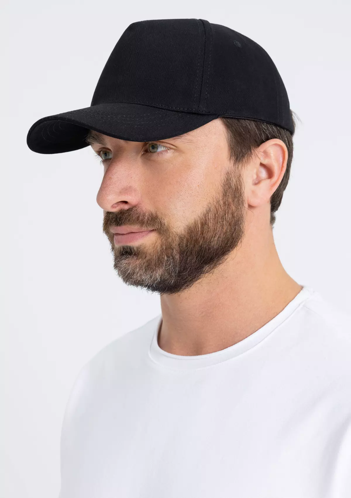 Бейсболка-пятиклинка без лобового шва с изогнутым жестким козырьком. Посадка регулируется ремешком на металлической застежке.