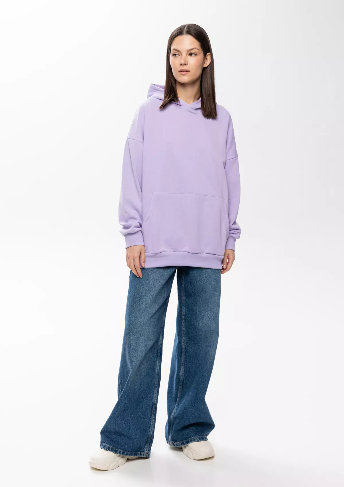 Универсальная толстовка свободного силуэта с капюшоном комфортной глубины, спущенной линией плеча и глубоким карманом-кенгуру. Манжет и низ изделия оформлены широкой эластичной резинкой.