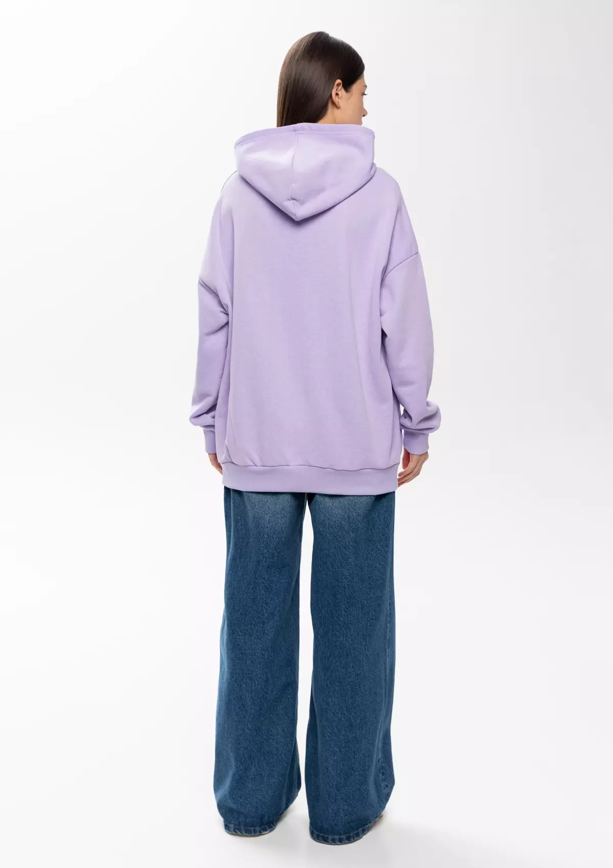 Универсальная толстовка свободного силуэта с капюшоном комфортной глубины, спущенной линией плеча и глубоким карманом-кенгуру. Манжет и низ изделия оформлены широкой эластичной резинкой.