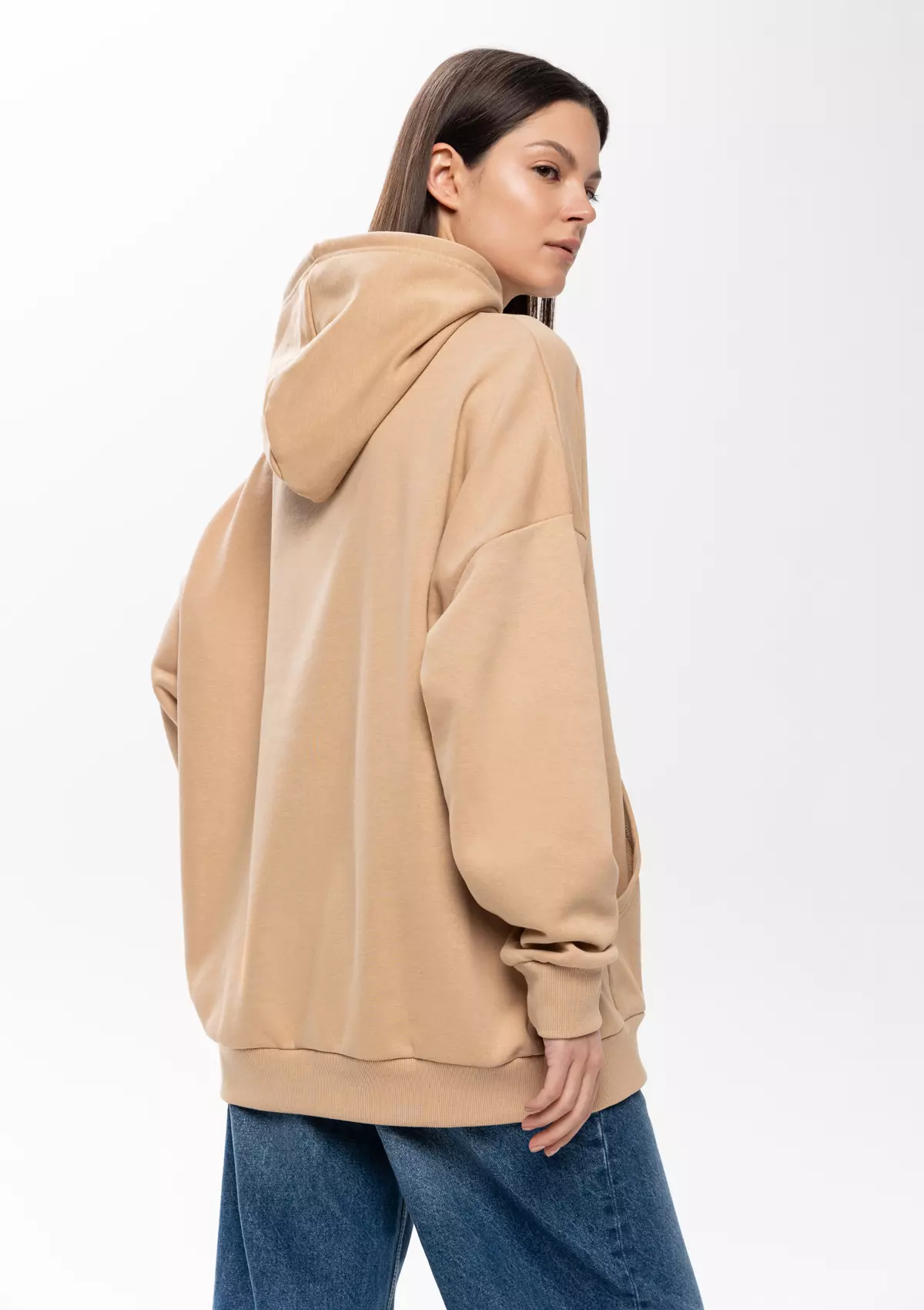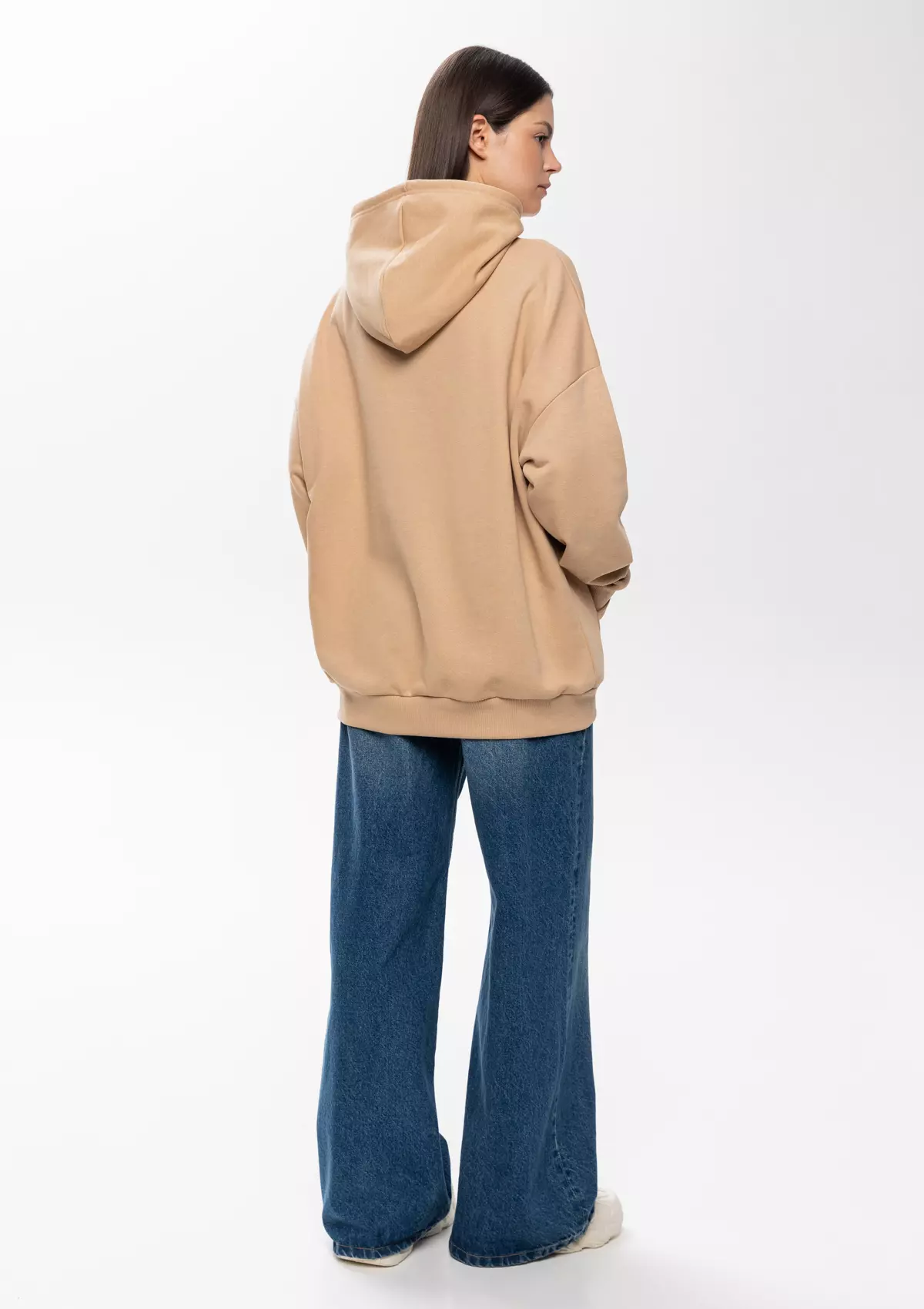 Универсальная толстовка свободного силуэта с капюшоном комфортной глубины, спущенной линией плеча и глубоким карманом-кенгуру. Манжет и низ изделия оформлены широкой эластичной резинкой.