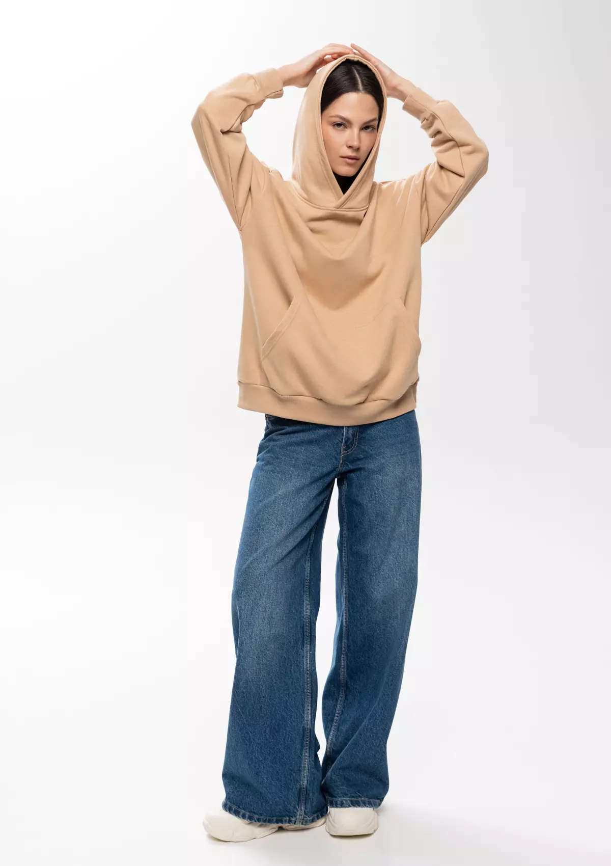 Универсальная толстовка свободного силуэта с капюшоном комфортной глубины, спущенной линией плеча и глубоким карманом-кенгуру. Манжет и низ изделия оформлены широкой эластичной резинкой.