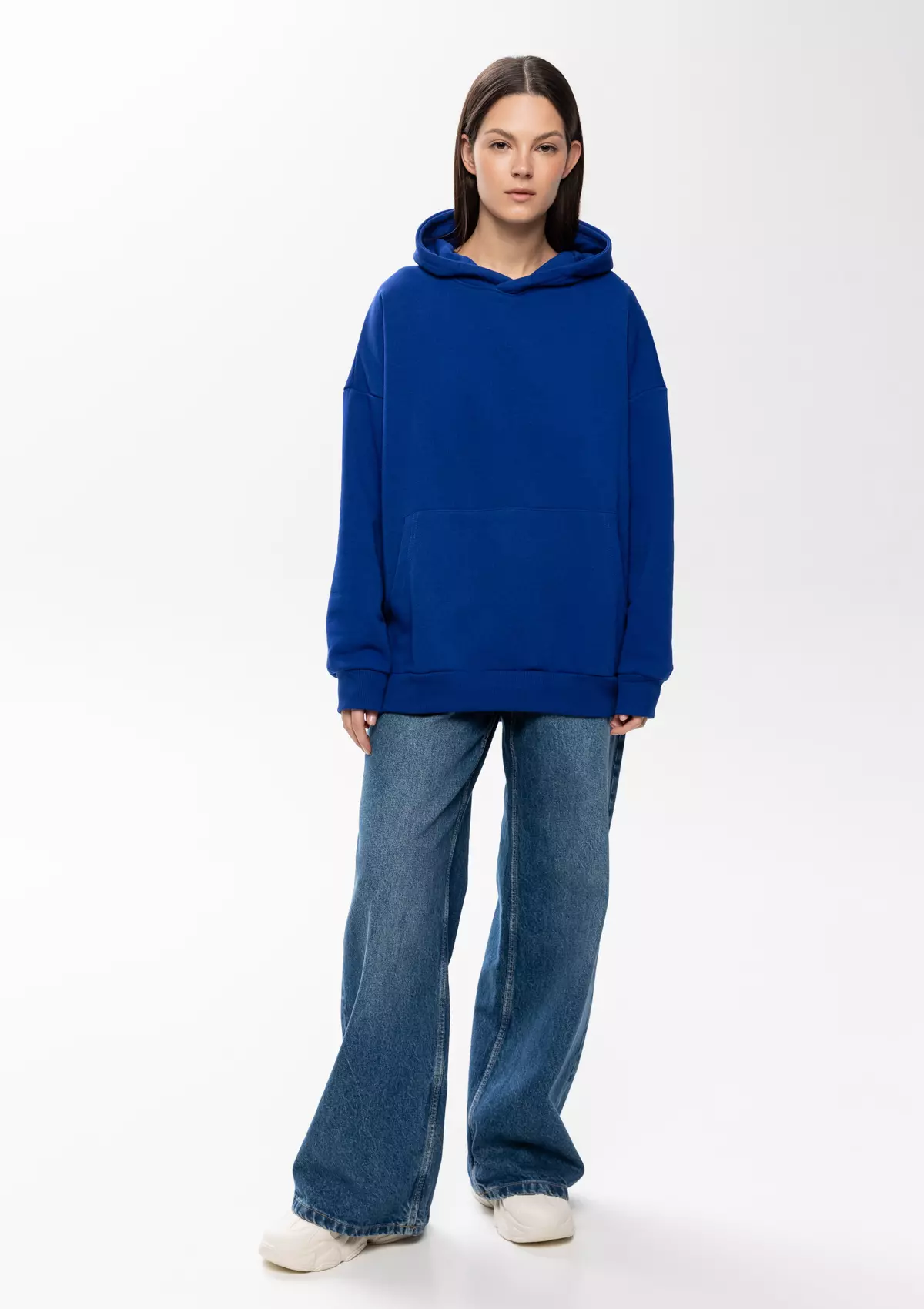 Универсальная толстовка свободного силуэта с капюшоном комфортной глубины, спущенной линией плеча и глубоким карманом-кенгуру. Манжет и низ изделия оформлены широкой эластичной резинкой.