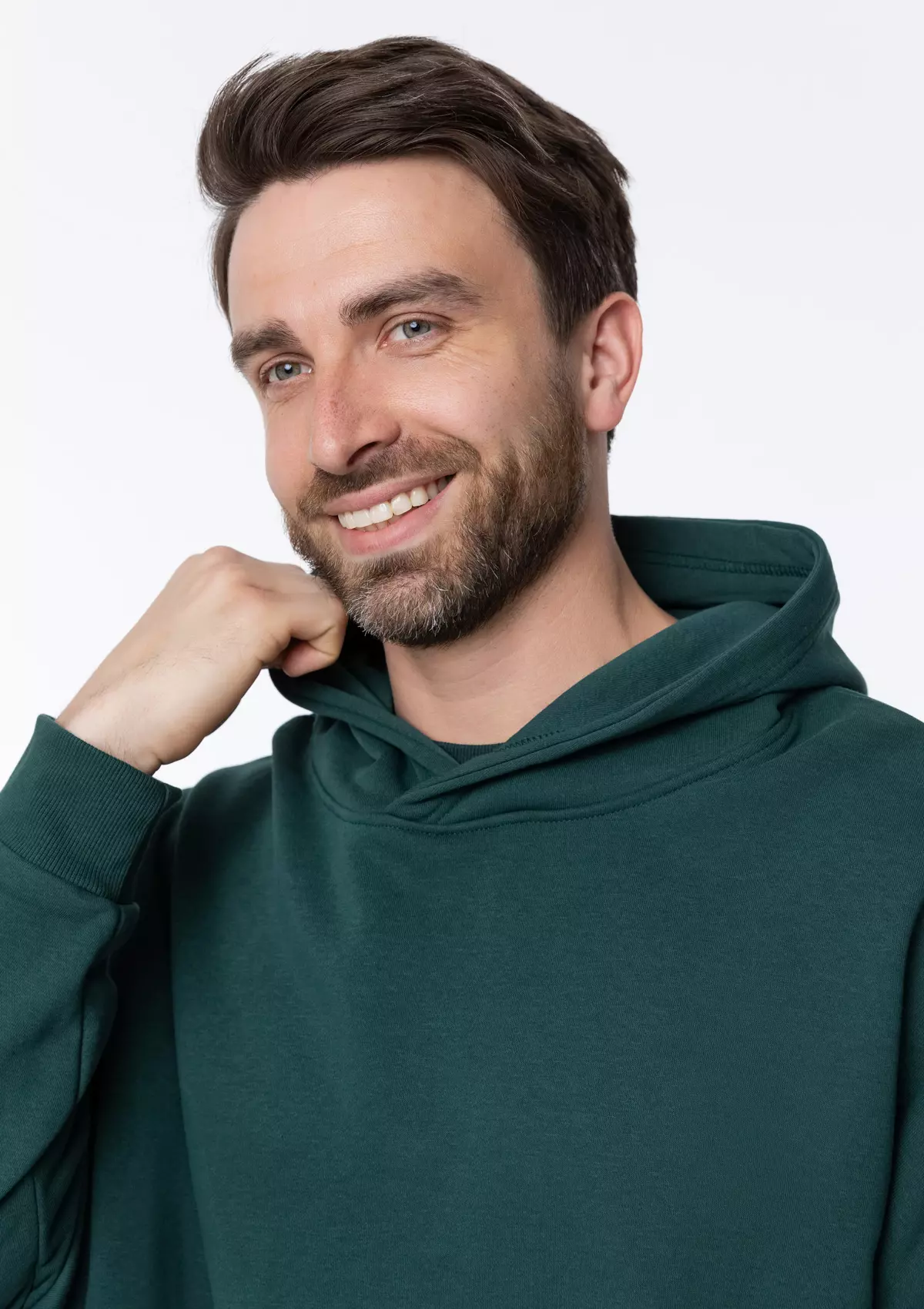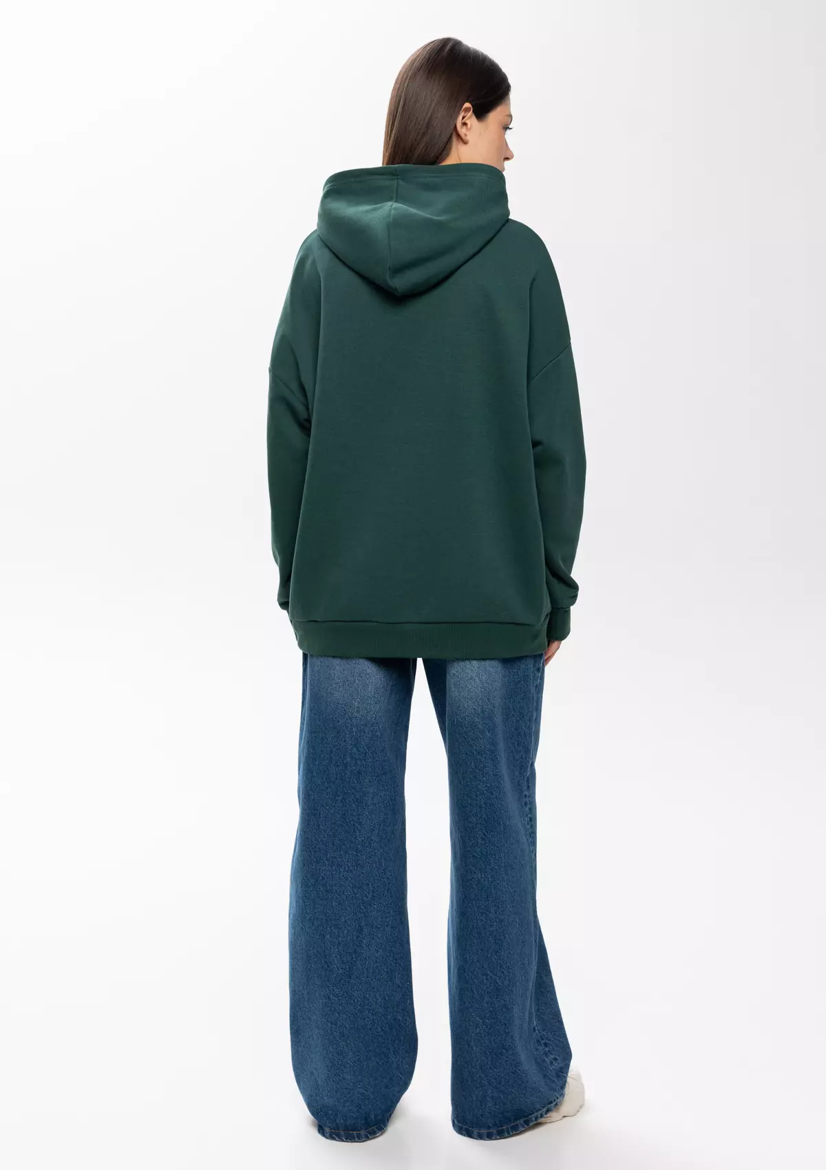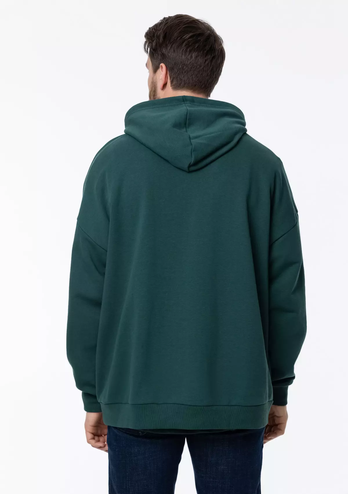Универсальная толстовка свободного силуэта с капюшоном комфортной глубины, спущенной линией плеча и глубоким карманом-кенгуру. Манжет и низ изделия оформлены широкой эластичной резинкой.
