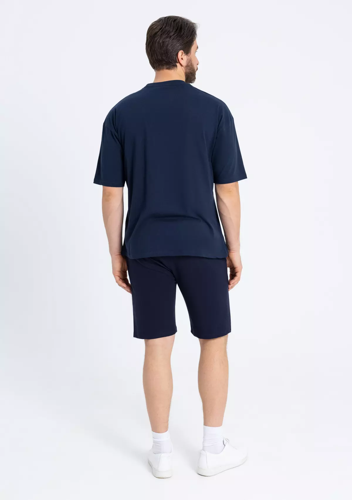 Размер мужской футболки: 50/L. Параметры модели: рост 190 см.; обхват груди 108 см.; обхват талии 87 см.; обхват бедер 104 см.