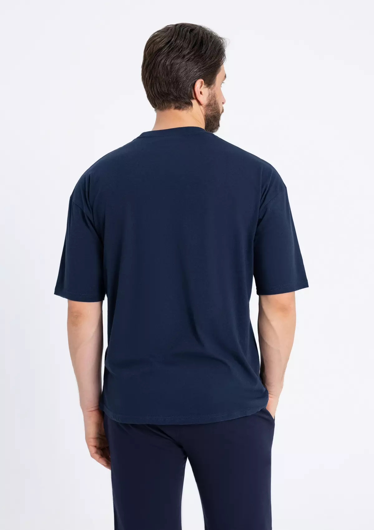 Свободная футболка силуэта-oversize с округлым воротом и спущенной линией плеча. Универсальная модель идеально впишется как в мужской, так и в женский гардероб.