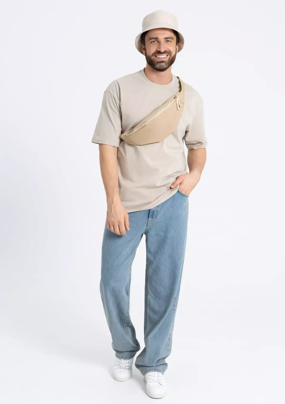 Универсальная футболка силуэта-oversize с округлым воротом и спущенной линией плеча.