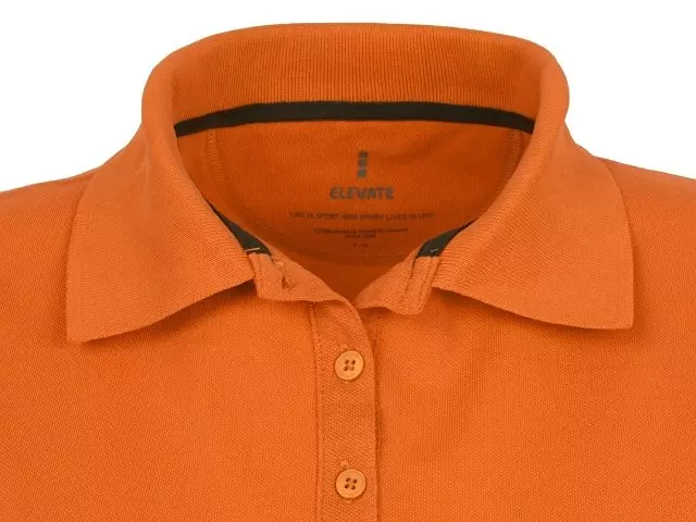 Женская рубашка поло с короткими рукавами Calgary. Стандартный покрой. Опущенный плечевой шов, цепная строчка. Мужская и детская модели на двух пуговицах. Женская модель с планкой на три пуговицы. Боковые разрезы с атласной лентой внутри. Детали со швами Pick-Stitch. Принт лого сзади в тон изделия. Атласная лента внутри горловины. Полумесяц. Резинка 1х1 на воротнике и манжетах. Трикотажное пике, 100% хлопок. 200 г/м².