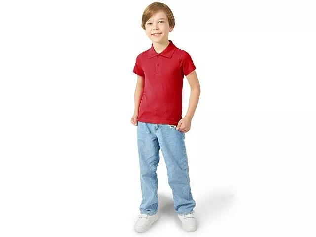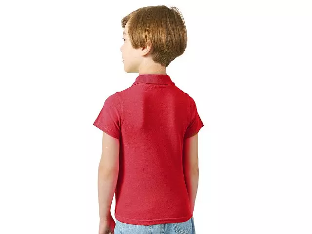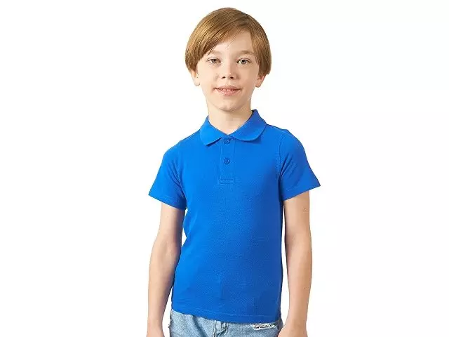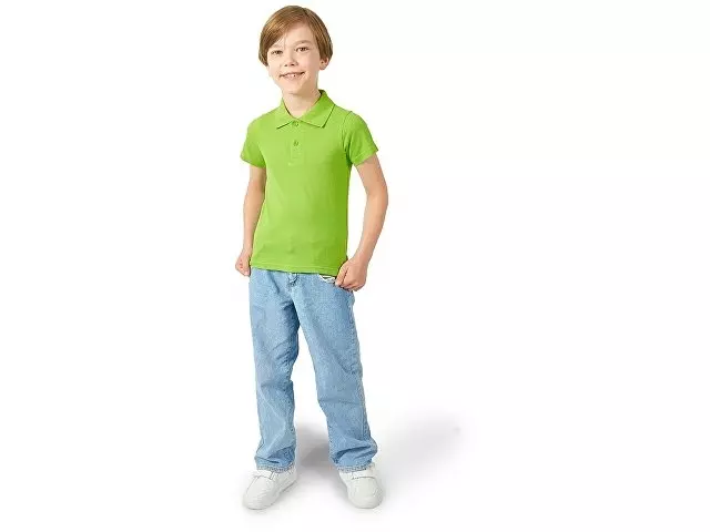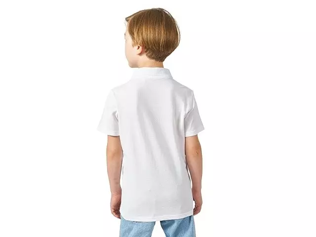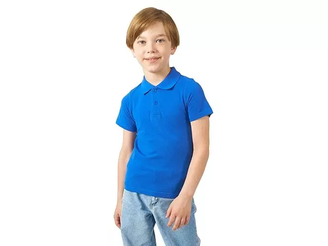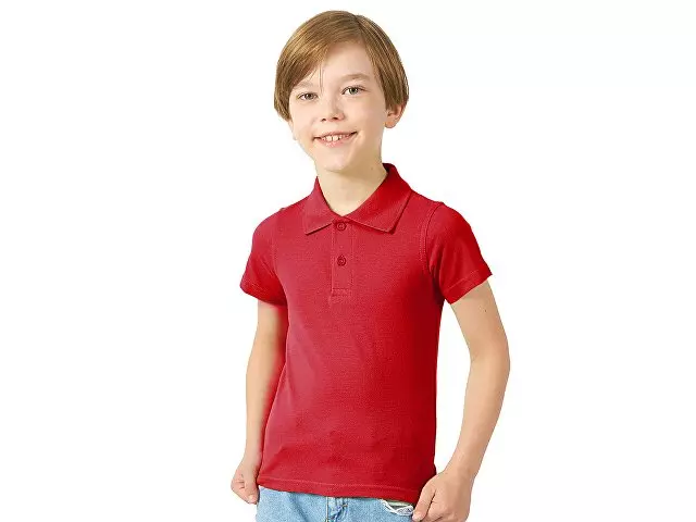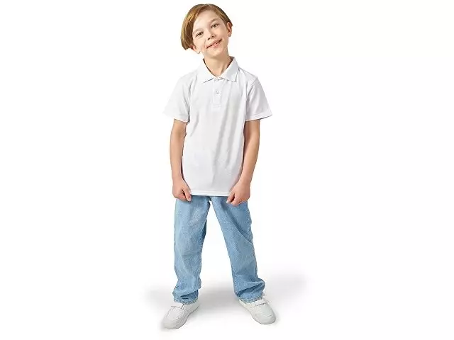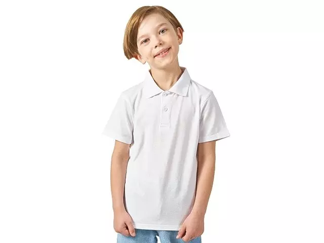 Детская рубашка поло First. Воротник 1х1. Обшивка внутри воротника. Мужская и детская модели с 2 пуговицами, женская - с 4 пуговицами. Пуговицы с гравировкой в тон. Пике, 100% хлопок. 160 г/м².