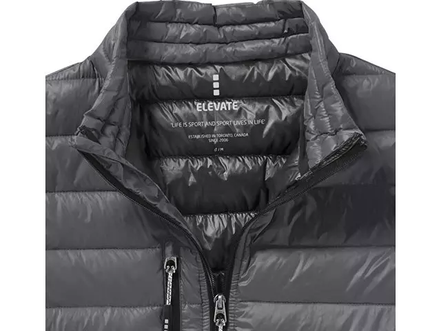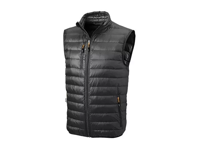 Пуховая жилетка Fairview. Стандартный покрой. Ткань не пропускает пух. Карманы для рук и нагрудный на молнии. Внутренний противоветровой клапан и защита подбородка. Эластичная обшивка внизу и на проймах. Ткань дышащая, ветронепроницаемая и влагоотталкивающая. Отражающий лого сзади. Ремешки на собачку (второй комплект в цвете антрацит). Жилет - версия победителя премии Reddot, куртки Scotia. Ткань из 100% нейлона с матовым и блестящим водоотталкивающим покрытием, 20D. 80% пух и 20% перо.