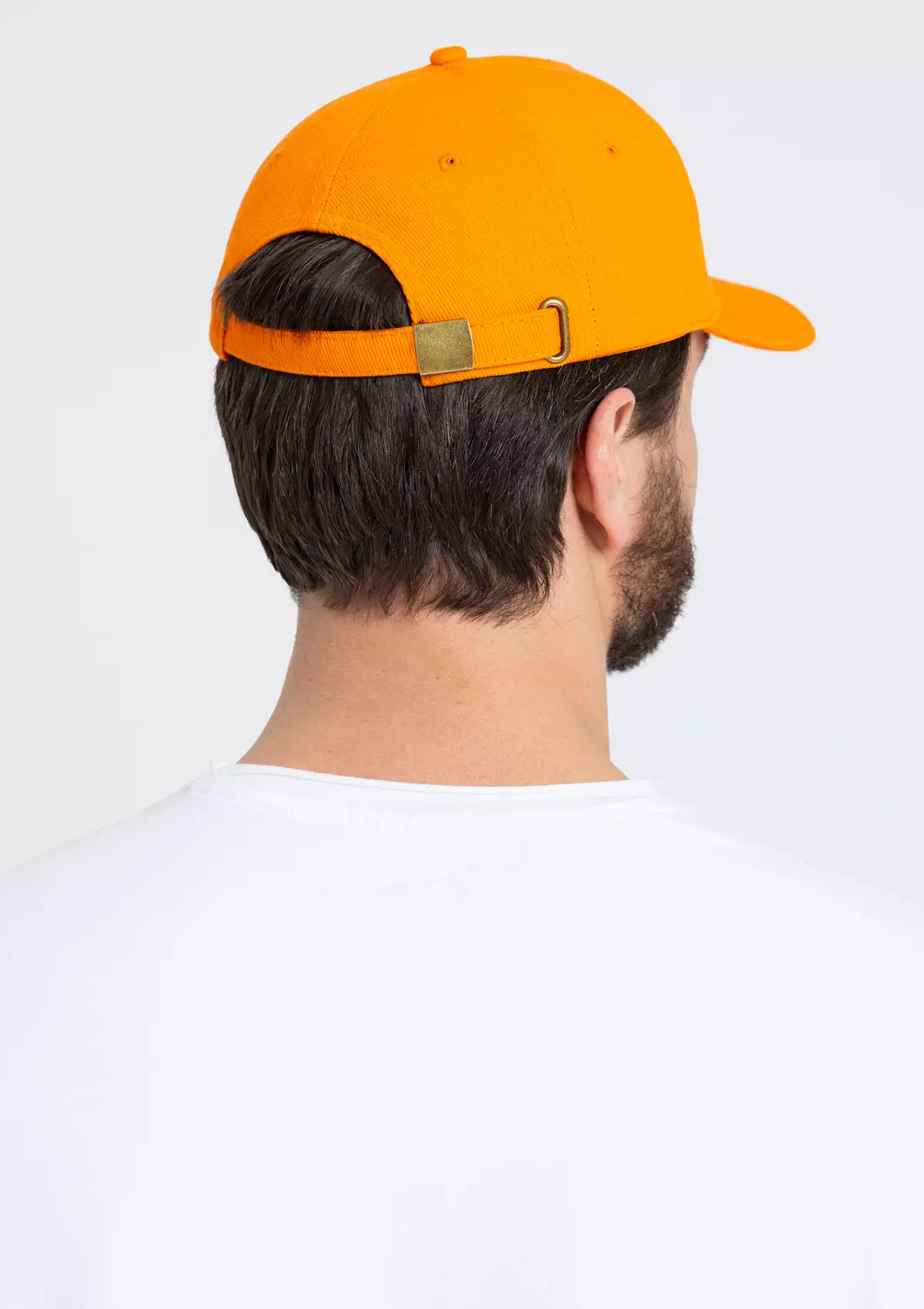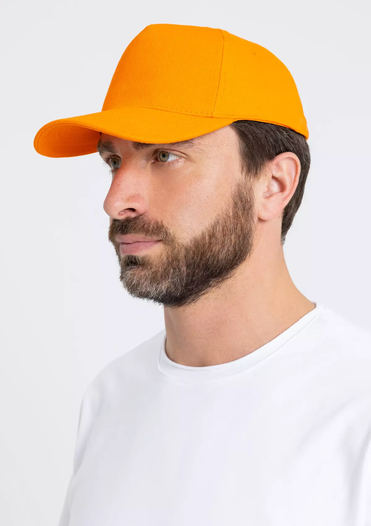 Бейсболка-пятиклинка без лобового шва с изогнутым жестким козырьком и регулируемой металлической застежкой.