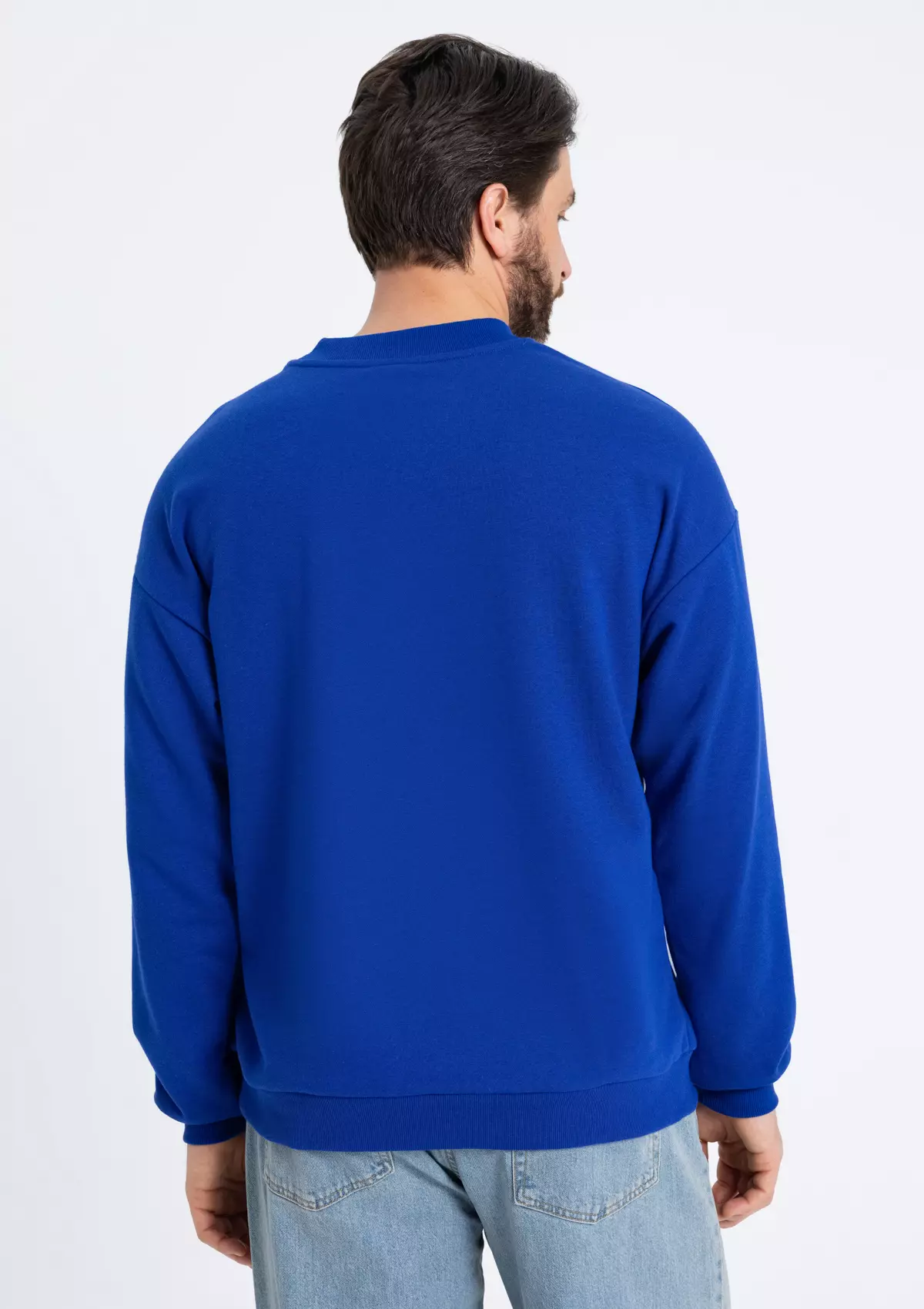Свитшот расслабленного кроя с широкой горловиной, спущенной линией плеча и манжетами на рукавах по нижнему краю изделия.