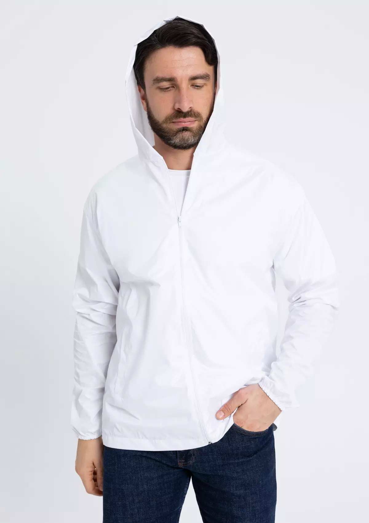 Ветровка прямого силуэта с глубоким капюшоном, спущенной линией плеча, прорезным карманом и застежкой на молнию. Для дополнительной защиты от ветра изделие дополнено эластичной резинкой на рукаве и кулисой по линии низа.