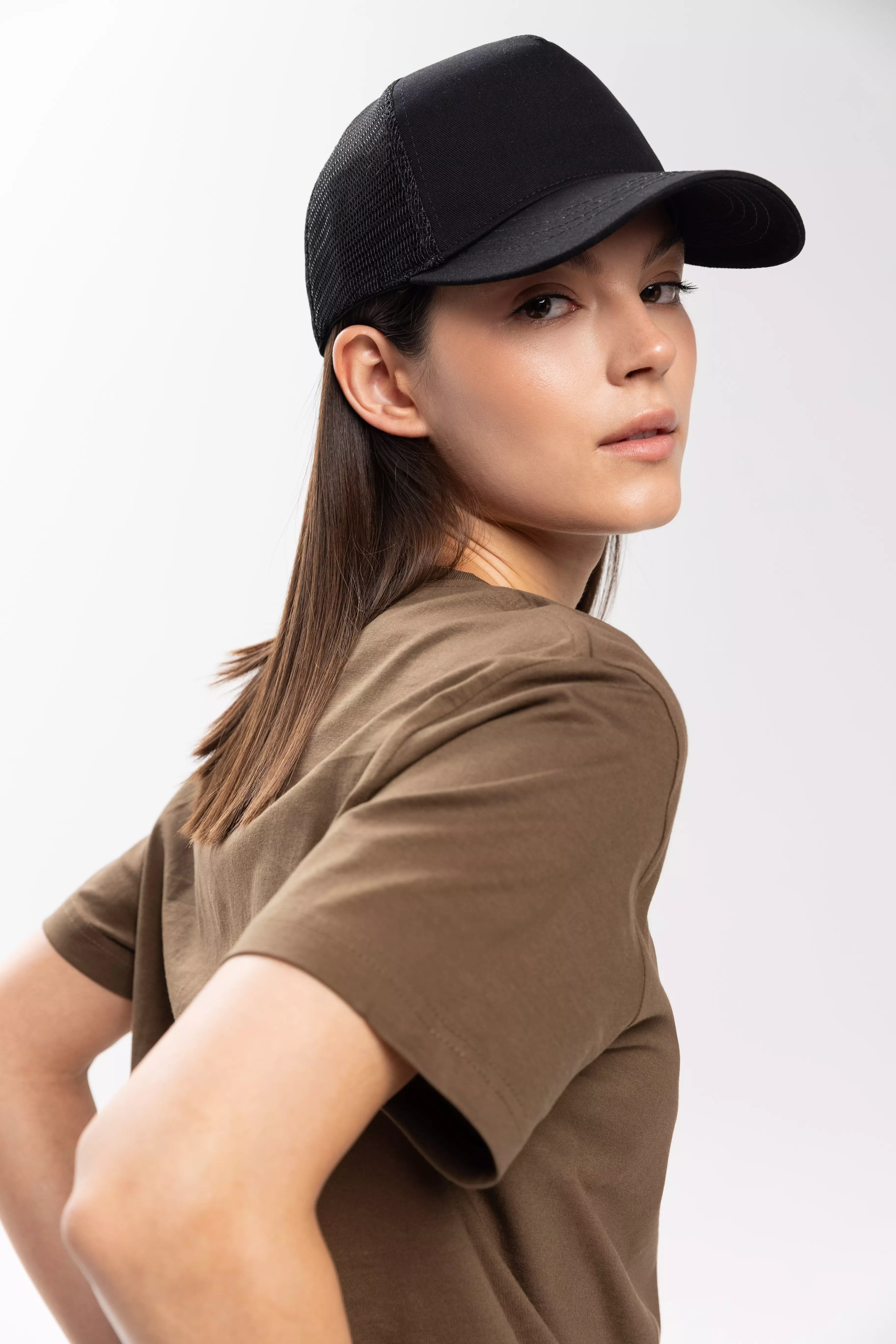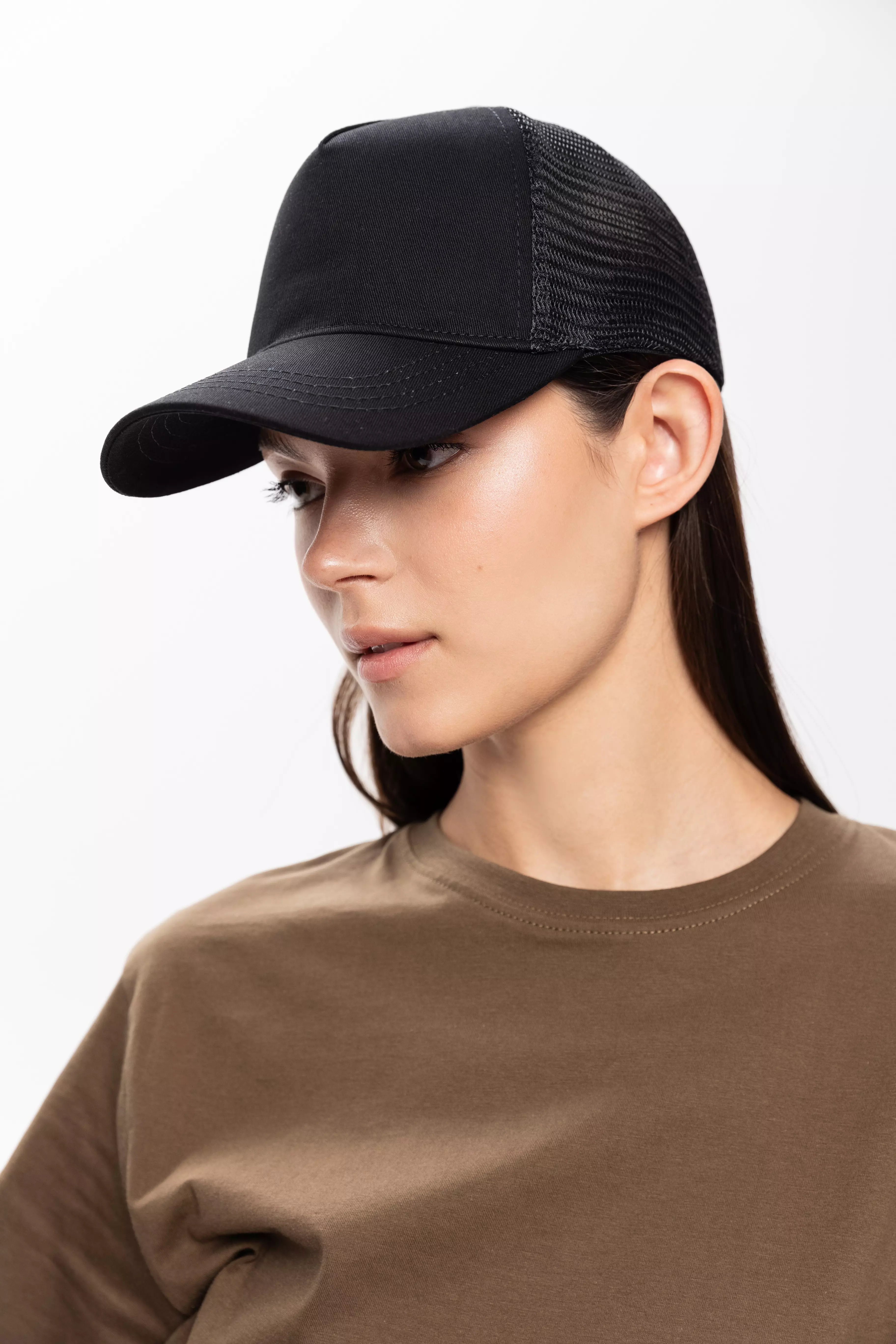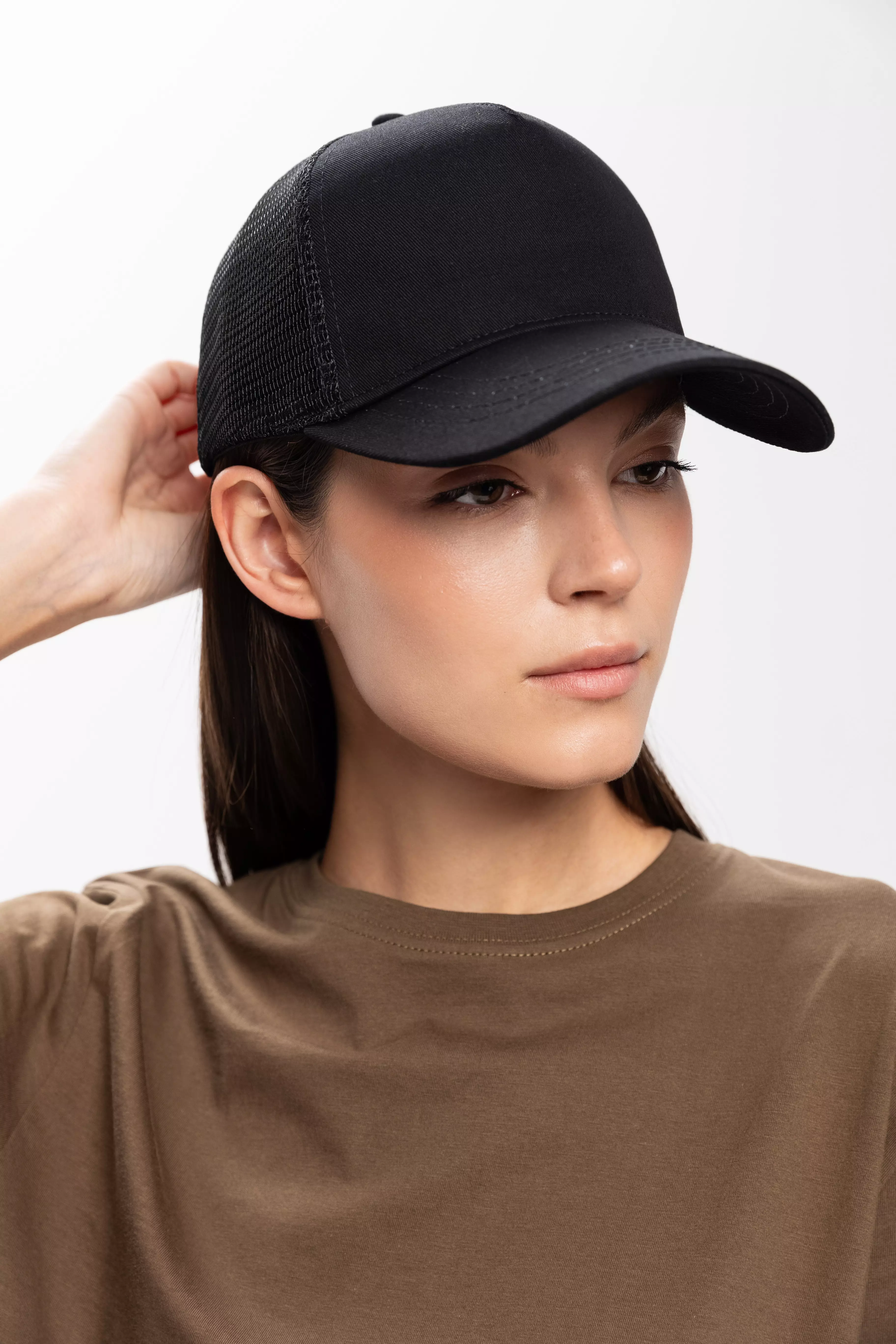 Бейсболка-пятиклинка с изогнутым жестким козырьком и прочной пластиковой регулируемой застежкой.