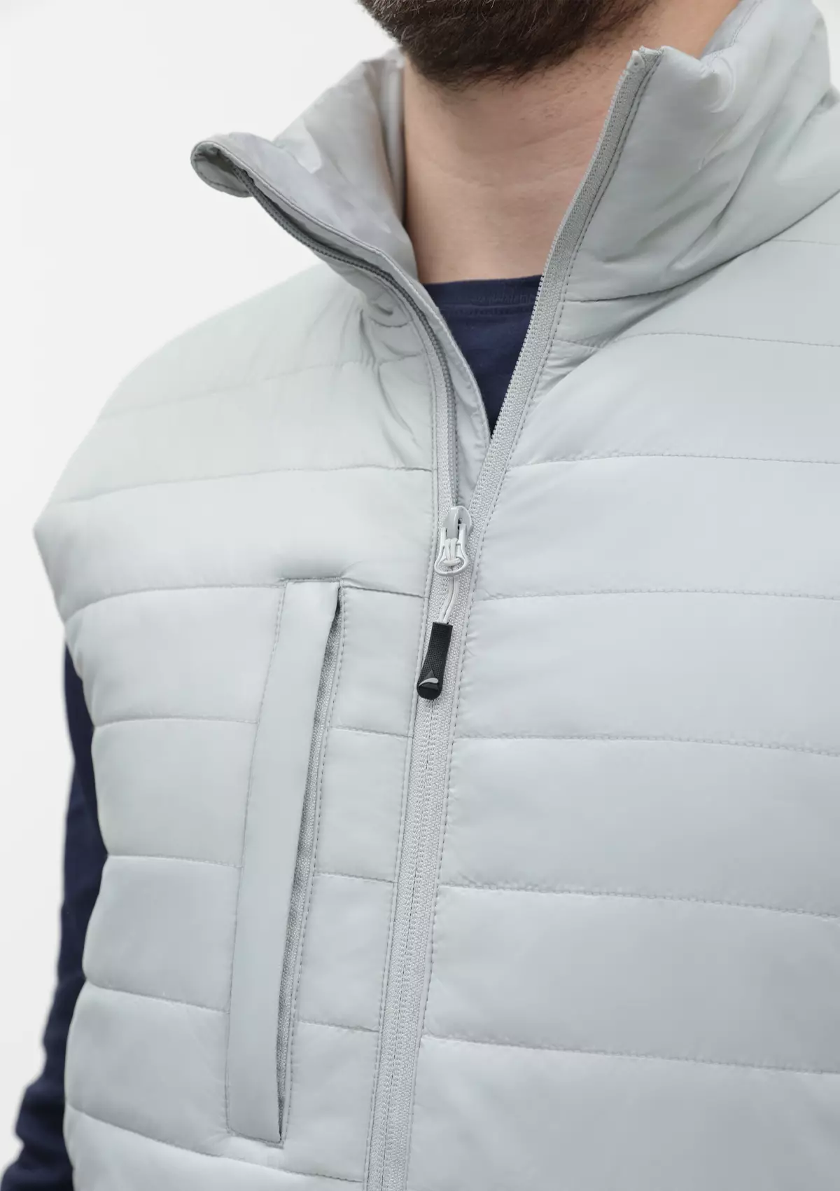 Ультралегкий жилет прямого силуэта с горизонтальной стежкой, воротником-стойкой, функциональным карманом по правой полочке, прорезным карманом и застежкой на молнию с внутренней ветрозащитной планкой. В комплекте прилагается сумка-чехол __amp__amp;#40;технологии нанесения: шелкотрансфер и DTF-печать__amp__amp;#41;.