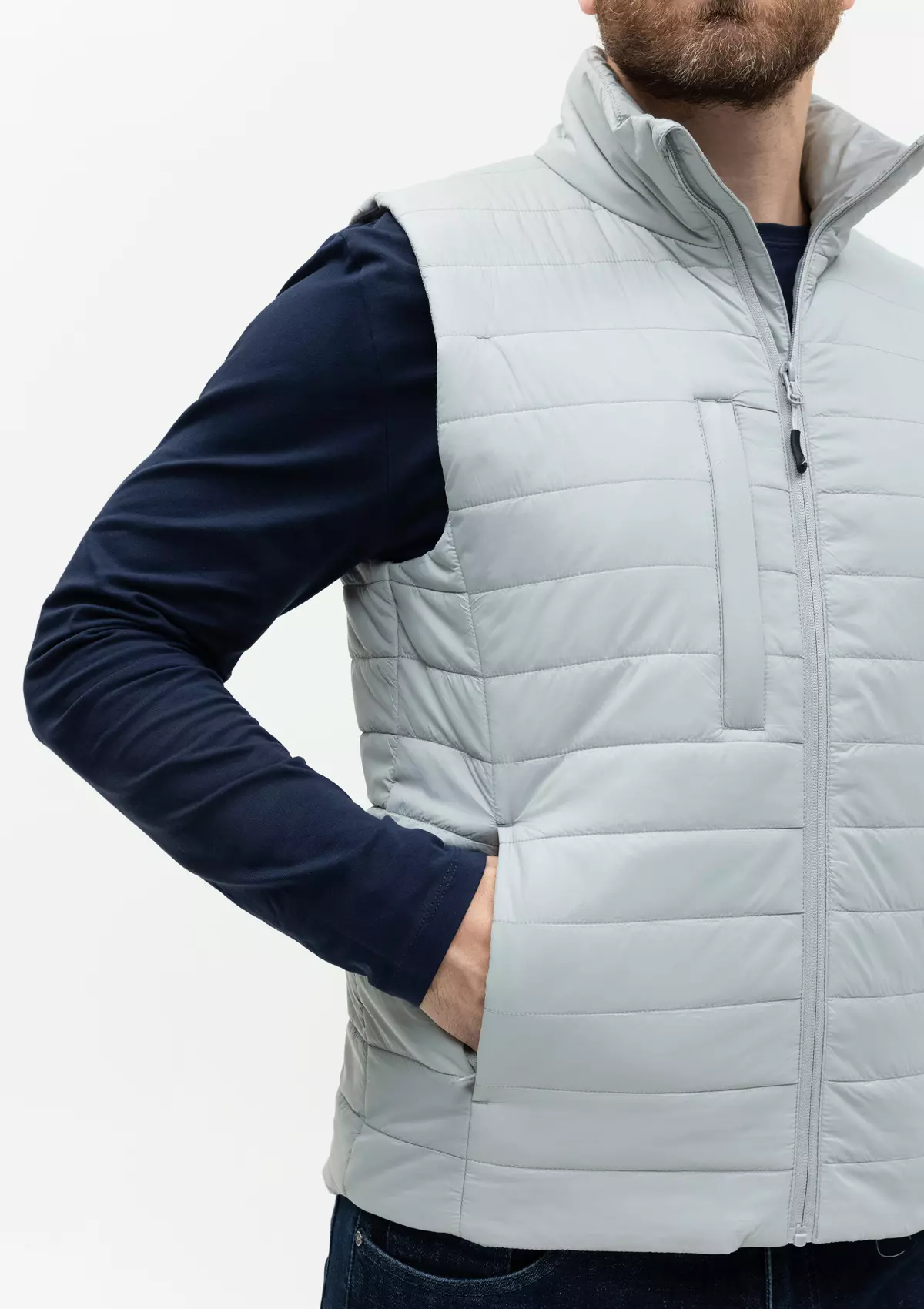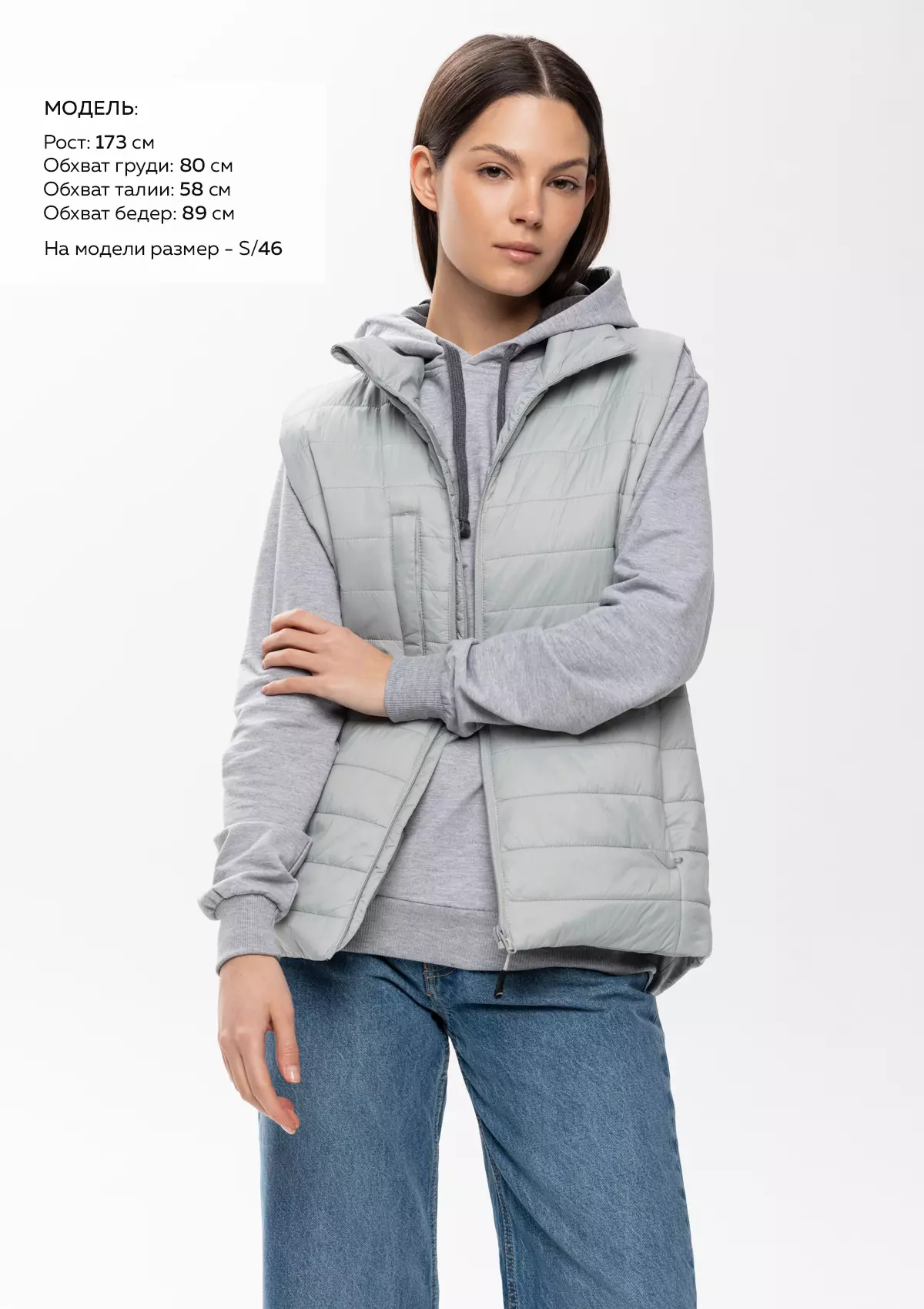 Ультралегкий жилет прямого силуэта с горизонтальной стежкой, воротником-стойкой, функциональным карманом по правой полочке, прорезным карманом и застежкой на молнию с внутренней ветрозащитной планкой. В комплекте прилагается сумка-чехол __amp__amp;#40;технологии нанесения: шелкотрансфер и DTF-печать__amp__amp;#41;.